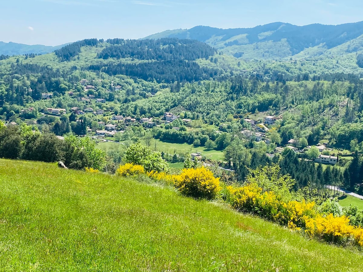 See võluv unistuste vaade stuudio asub South Ardeche südames. Ilus vana atmosfäär, mugavad ja ilusad vaated! Un petit coin de paradis. Hommikul ärkavad sind lammaste kellad ja rõõmsameelsed pääsukesed. Lase end roheliste mägedest ja mägedest omaks võtta! Olenemata sellest, kas otsustad tähelepanelikult lõõgastuda või aktiivselt välja minna, on siin meelerahu, et akut laadida. Stuudio on 10-minutilise autosõidu kaugusel Thermenist Vals les Bainsis.