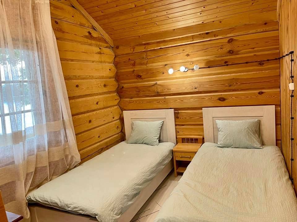 Mergupe jõe kallastel on võimalus nautida puhkust kõigi mugavustega palkmajas. Jõe helidest ümbritsetud puhkekodu annab sulle võimaluse veeta tõsiseid päevi, nautides loodust ja selle kingitusi - kalapüüki, suusatamist, ujumist, torusid, lõket, kõndimist. Majas on täielikult varustatud köök, kamin, söögilaud, saun, üks isoleeritud magamistuba ja üks isoleeritud tuba väljatõmmatava diivaniga, terrass ja kamin. Majake asub suletud privaatses piirkonnas. Vann ja saun lisatasu eest.