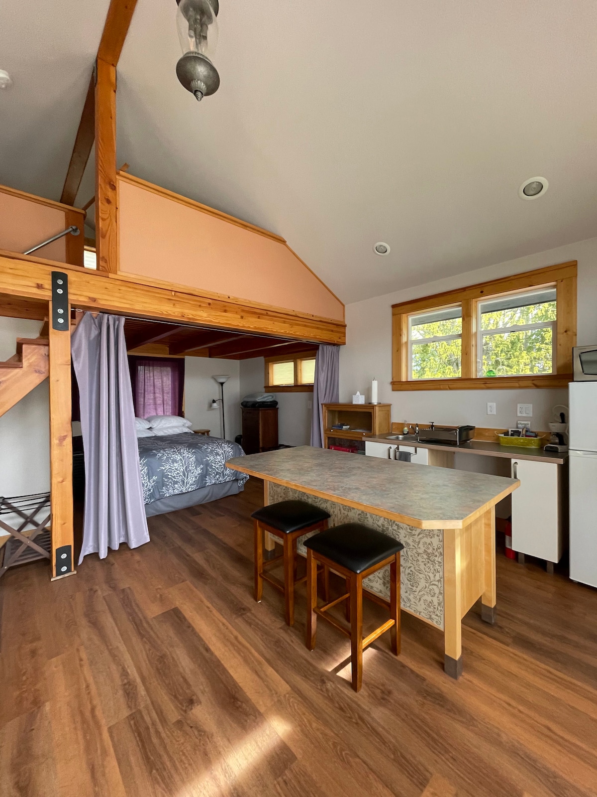 Tere tulemast Art Barn 2.0 'sse, varem "The Art Barn".„ Oleme uued omanikud ja plaanime hoida seda nii, nagu see on olnud! See korter sobib ideaalselt nii nädalavahetuse seiklejatele kui ka pikaajalistele külalistele, eriti neile, kellele meeldib jalgrattaga sõita ja kõndida. Lõunapoolsed hiiglaslikud aknad tõstavad esile imelise vaate olümpiamängude mägedele ja loovad valgusküllase avatud ruumi (suurepärane joogahuvilistele!) Öösiti kuuled koiote karjumas ja näed päeval pilguheitu kotkaid ja merelindudele.