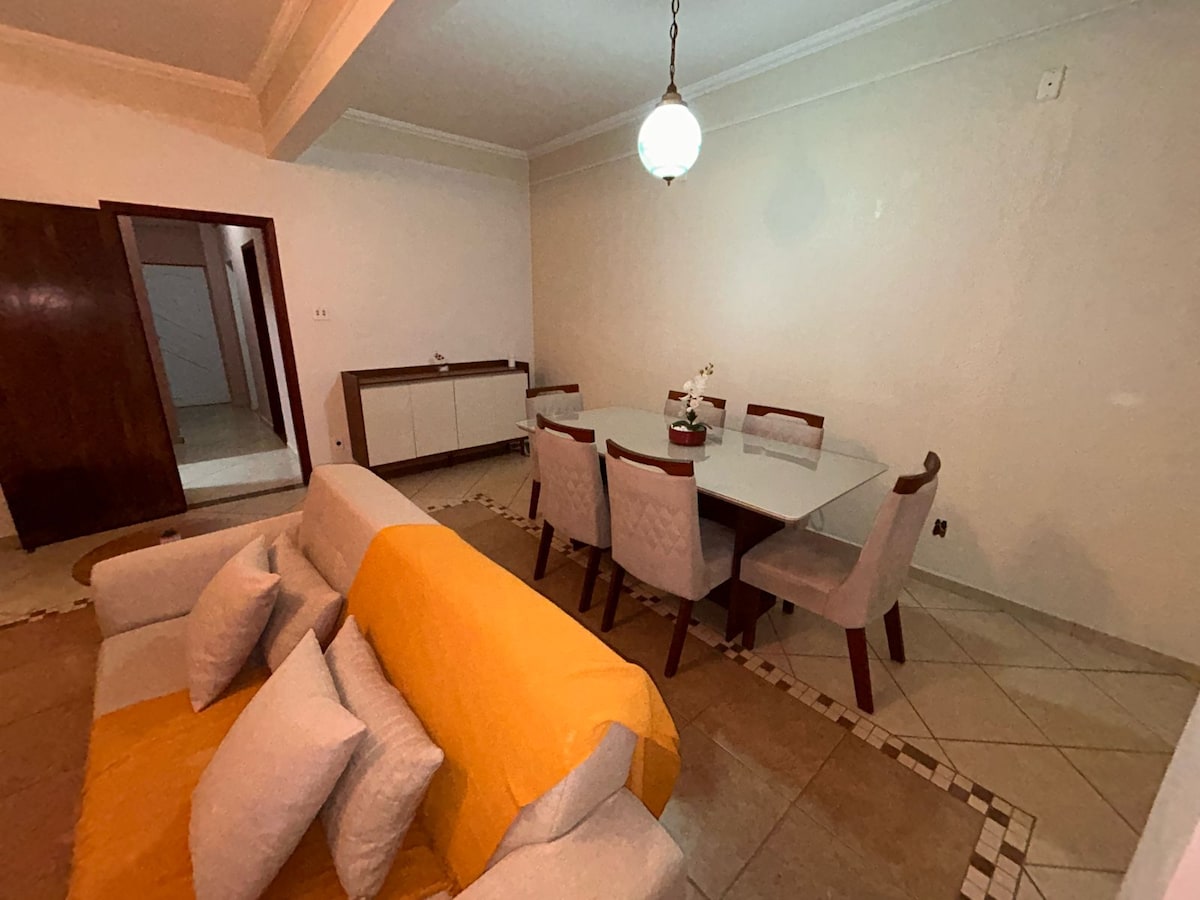 Leve sua a família a este ótimo lugar, tranquilo com muito conforto. Garagem com 2 vagas com portão eletrônico, ótima localização. Obs/ A casa tem 4 camas de solteiro, sendo que uma é bicama e uma cama de casal, tenho 2 colchões de solteiro avulso. Nos quartos tem ventilador de teto e na sala um ventilador de coluna.