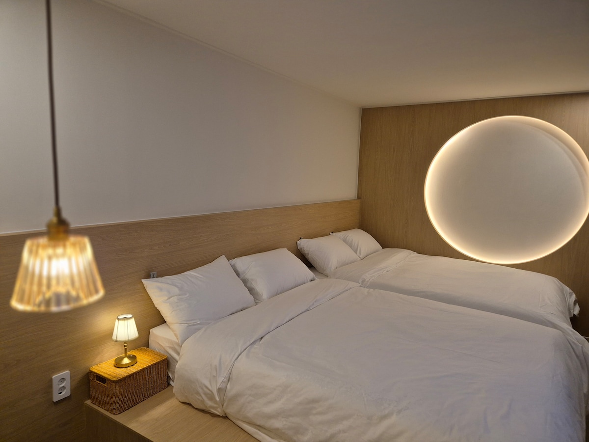 Meie maja on igapäevase koristamise ja desinfitseerimisega puhas, hõlbus juurdepääs Jeonju vaatamisväärsustele ja kuulsatele vaatamisväärsustele ning pakub avarat parkimist. Läheduses on Starbucks, McDonald's ja esmatarbekaupade poed, nii et saad seda mugavalt kasutada. Avar ruum, kus on kaks kaheinimesevoodit ja tipptasemel ruumid, mis sobivad ideaalselt peredele, samuti vahendid lastele, et saaksid nautida mugavat perereisi.