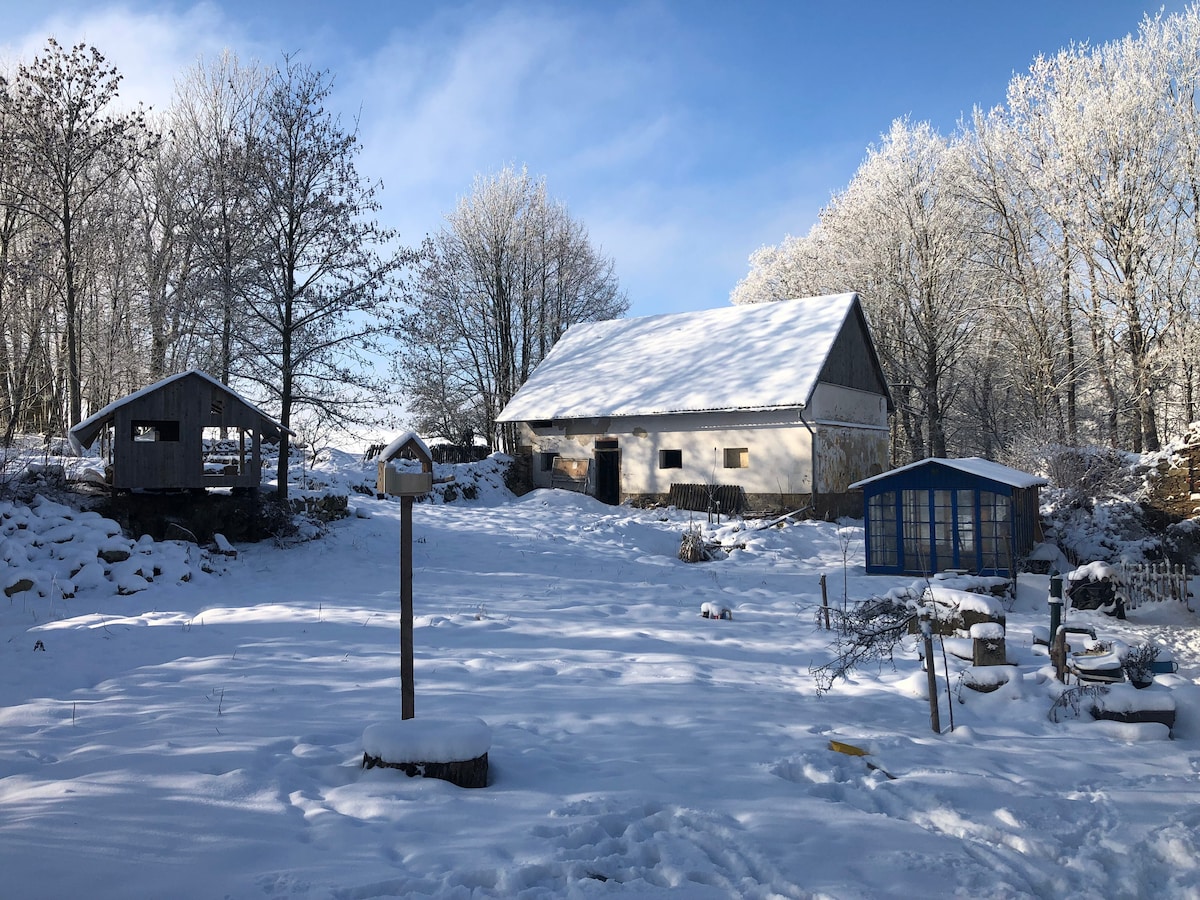 128 let stará chalupa se spaním na peci s topením v kamenech dřevem, nebo bez topení v ložnici. Krásné prostředí kopečkaté krajiny s výhledem na rybník a kapličku. Obec má 13 obyvatel, zahradnictví s chovem ovcí. Toužíte-li po klidu v kamenném domě, v krásné přírodě jsme ta nejlepší volba. Nově jsme postavili finskou saunu a v ložnici je infrasauna. Třetí osoba spí na přistýlce v kuchyni.