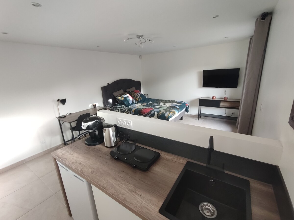 Renoveeritud, täielikult varustatud ja iseseisev valgusküllane stuudiokorter aiaga. Vaikne elurajoon, tasuta ja turvaline parkimine, mis asub ideaalselt kõigi reiside jaoks ja külastused lähedalasuvate poodidega kõigi vajalike asjade jaoks. - Külastused: Groupama staadion ja LDLC Aréna (7 min), Eurexpo ja Lyoni keskus (20 min), Meyzieu ZI, Markadas, Wide Wide Park, Via-Rhôna (5 min) - transport: tramm T3 , TCL buss, Lyon-St Exupéry lennujaam/TGV, kiirtee Häll saadaval