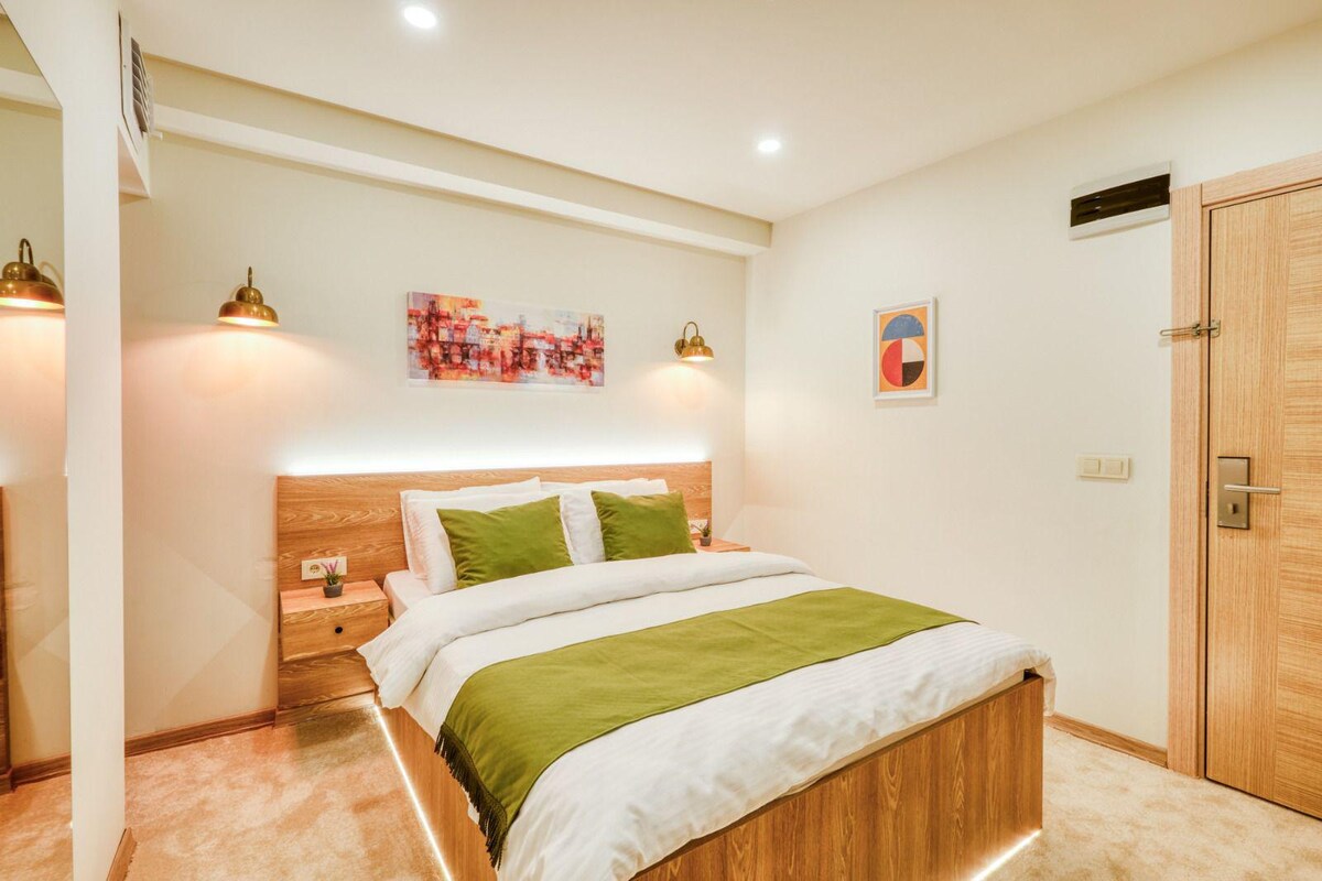 This spacious and airy 1+1 suite comfortably accommodates up to 4 guests, making it ideal for families, couples, or travelers seeking extra space. Located in a brand-new building, the suite offers a modern, stylish, and comfortable living area. The room is suitable for kitchen use, and kitchenware is provided upon request at check-in. Perfect for guests and travelers looking for a comfortable, spacious, and well-designed stay in a new building.
