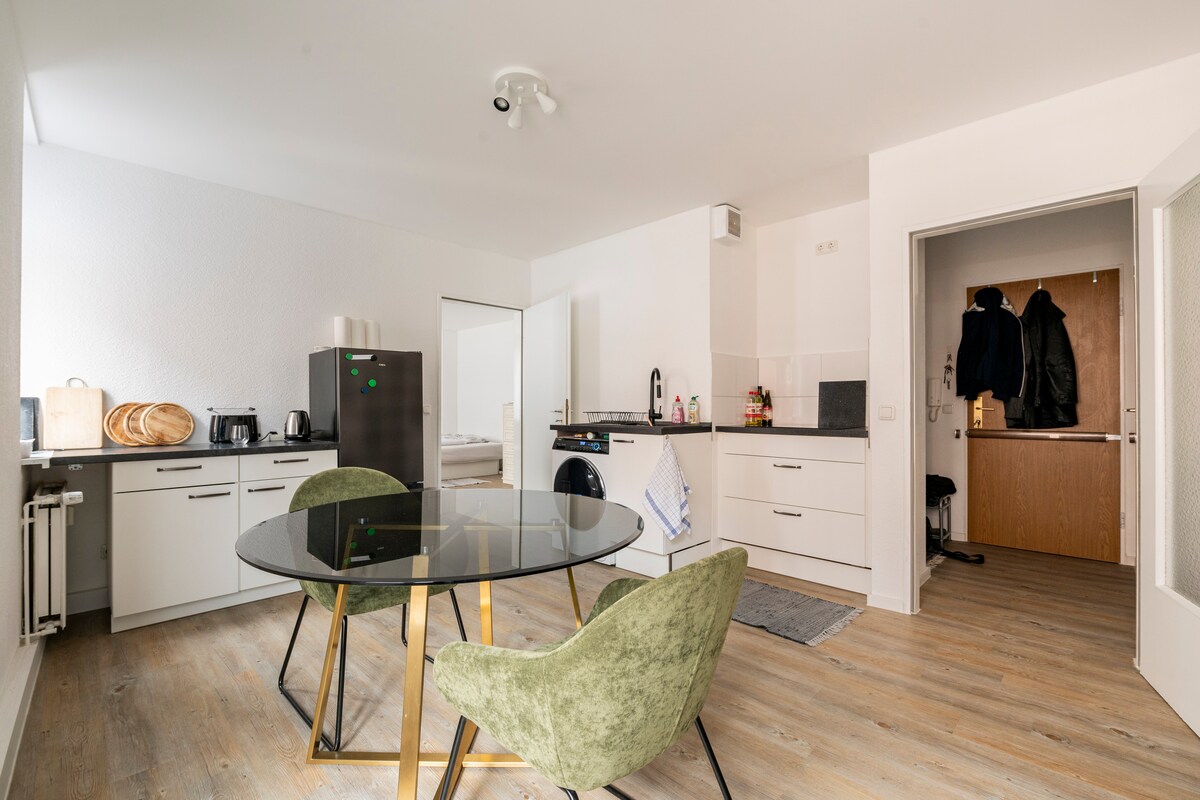 - Studio with 30sqm / 323sq ft of space - Ideal for up to 2 people - Double bed (160x200cm / 63x79in) - Modern bathroom with shower - Fully-equipped kitchenette with tea and coffee-making essentials and a dining table Please note that the actual room may differ from photos.