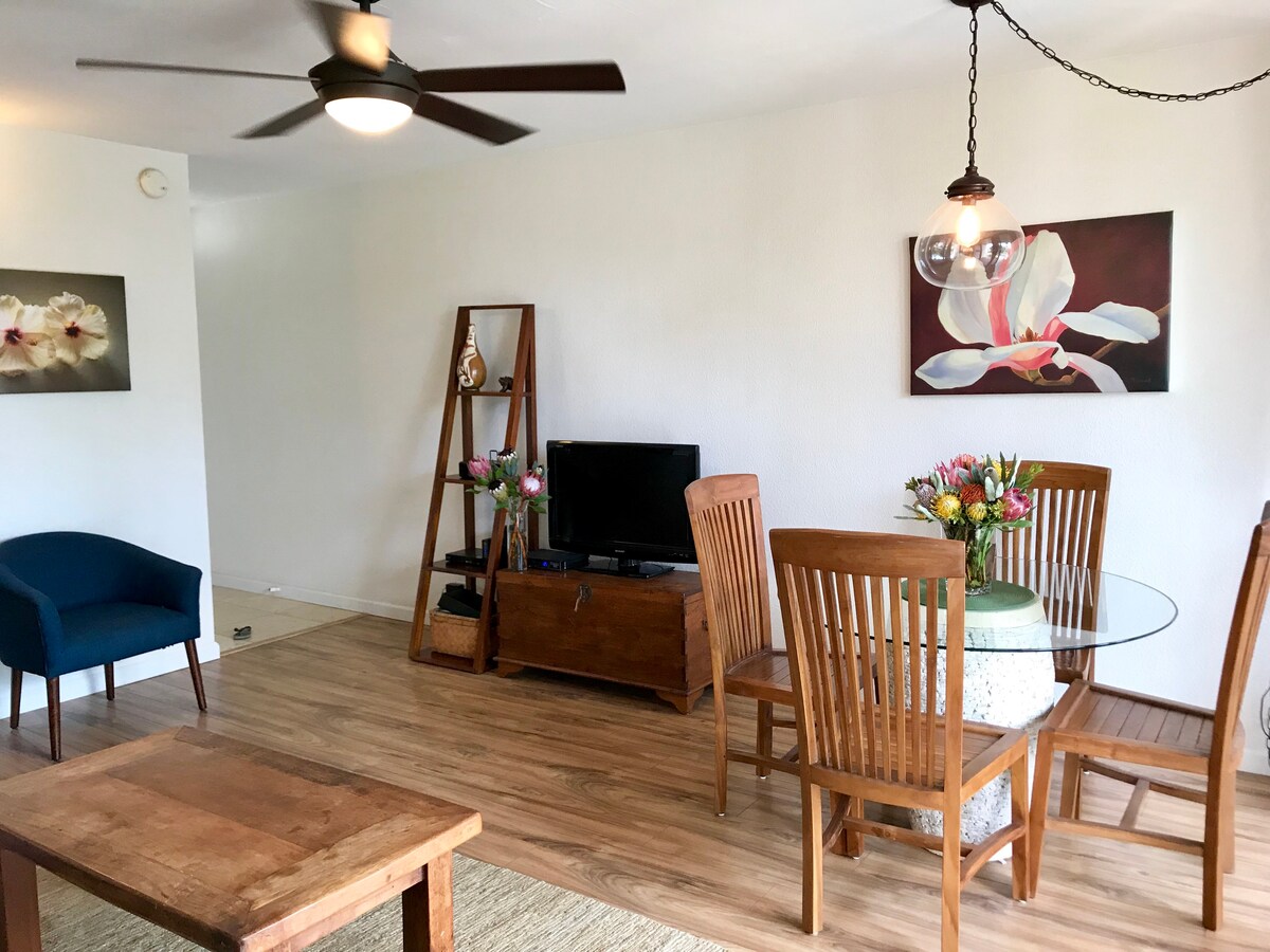 Aloha - tere tulemast oma Maui põgenemisele! Vaid mõne sammu kaugusel ikoonilistest Charley Youngi ja Kamaole I randadest asuv meie äsja renoveeritud korter pakub mugavust ning hämmastavaid söögikohti ja joogivõimalusi lühikese jalutuskäigu kaugusel. Naudi värskeid mereande, troopilisi kokteile ja kogu saare õhkkonda. Meie majutuskohas on läbimõeldud ja pidevalt uuendatud kõik, mida vajad lõõgastavaks ja unustamatuks viibimiseks. Broneeri oma troopiline puhkus jubatäna - meile meeldiks sind majutada! Mahalo, Dave ja Neldie