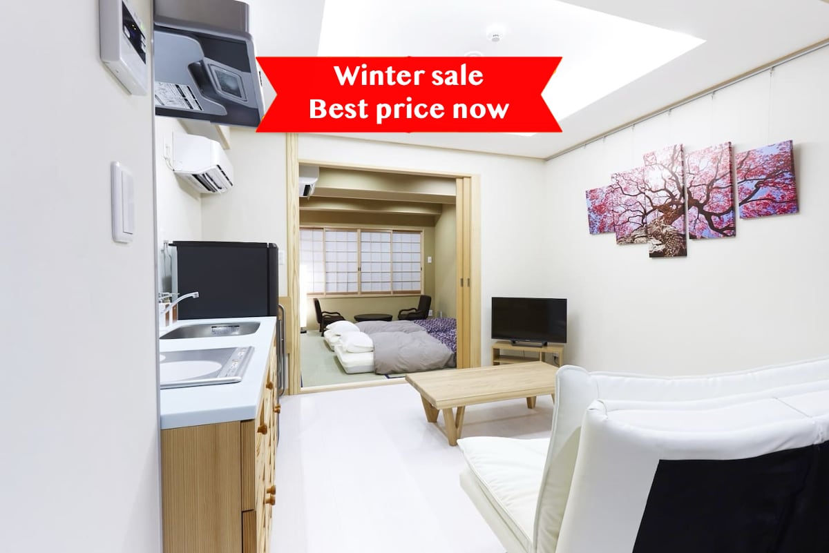 B1 Kyoto Center Shijo Kawaramachi Big Special Early Bird Offer New Opening 3 Person Room 30m2 Location Very Good Gion Takashimaya Nishiki Market Walking Distance