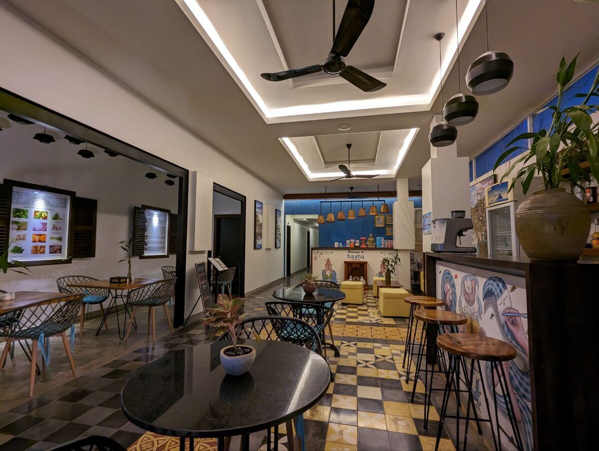 ** TUTVU MEIE TEISTE DIGITAALSETE NOMAD-READY MAJUTUSKOHTADEGA SAMAS ELUKOHAS !! ** Me kõik tegeleme tähelepaneliku reisimisega. Meie külalised on meile väga olulised ja me hoolitseme oma kohaliku meeskonna ja kogukonna eest. Meie ruumikas stuudio kuulub võluvasse majutuskohta, kus on seitse eraldi üksust, otse Kandal Village 'i südames. Parim osa? See on vaid viie minuti jalutuskäigu kaugusel kesklinnast. Seest leiad käsitööna valmistatud kohalikku mööblit, mis voolab läbi suurte klaasuste sisse palju loomulikku valgust.