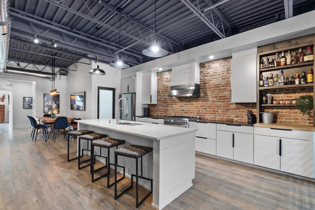 Discover a stunning historic loft in vibrant Independence Square, perfect for 5 guests. This modern, Scandinavian-inspired space features an open floor plan, high ceilings, a dedicated workspace with fast Wi-Fi, and a fully equipped kitchen. Walk to unique boutiques, local dining, and historic Truman sites, Chiefs, Royals and World Cup Games. Ideal for families, remote workers, or a stylish city getaway. Enjoy the blend of 1800s charm and modern comfort in this unique urban retreat.