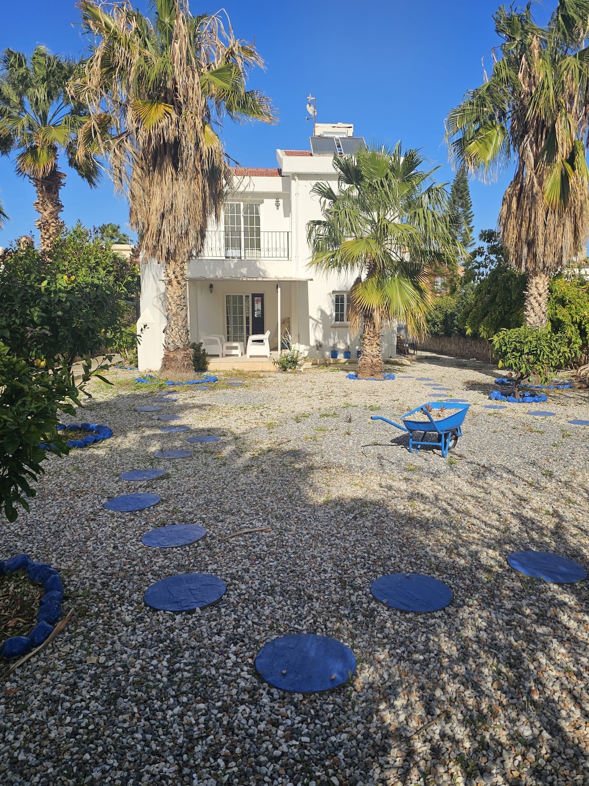 Girne, tarihi limanı ve eşsiz plajlarıyla bir tatil cennetidir. Evimiz bu güzelliklere kısa bir mesafede bulunmaktadır. Size unutulmaz bir tatil yaşatmayı amaçlamaktadır. Günlük yürüyüşleriniz için yan tarafta stadyum bulunmaktadır. Begonvil ve alev ağacı gibi bitki örtüsü ile çevrili olup doğal yaşamı keşfetmeniz için mükemmel bir ortam sunmaktadır. Evimiz modern ve rahat bir iç mekana sahiptir. Siz misafirlerimizi ağırlamaktan mutluluk duyarız.