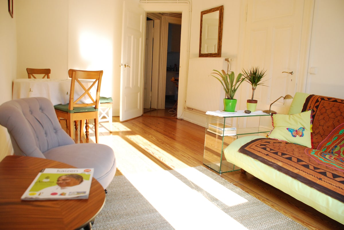 Värskelt ja stiilselt renoveeritud 4-toaline ülemise korruse korter (täielik renoveerimine 11/2025) otse Karlsruhe peajaama vastas. Valge vannituba vanniga, eraldi WC, hästi varustatud köök söögialaga ja roheline vaade. Prantsuse rõdud vaatega linnale ja Pfalzi piirkonnale. Ideaalne peredele, rühmadele, linnapuhkusteks ja ärireisideks. Rangelt mittesuitsetajate kodu (sees ja rõdu, täiendav koristustasu). Kirglikud majutajad alates 2019. aastast. Vajadusel kaarditagatis (250–1000 €).