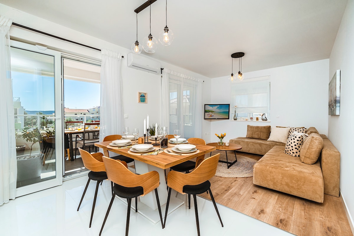 D&D Luxury Promenade Apartment asub esimeses reas merest, peapromenaadil, vaid 10 m kaugusel kaunist Aadria merest. See on üle 150 aasta vana kivimaja ja täielikult renoveeritud juunis 2020. See luksuslik korter ühendab moodsa ja traditsioonilise dalmaatsia disaini elegantsel ja funktsionaalsel viisil.