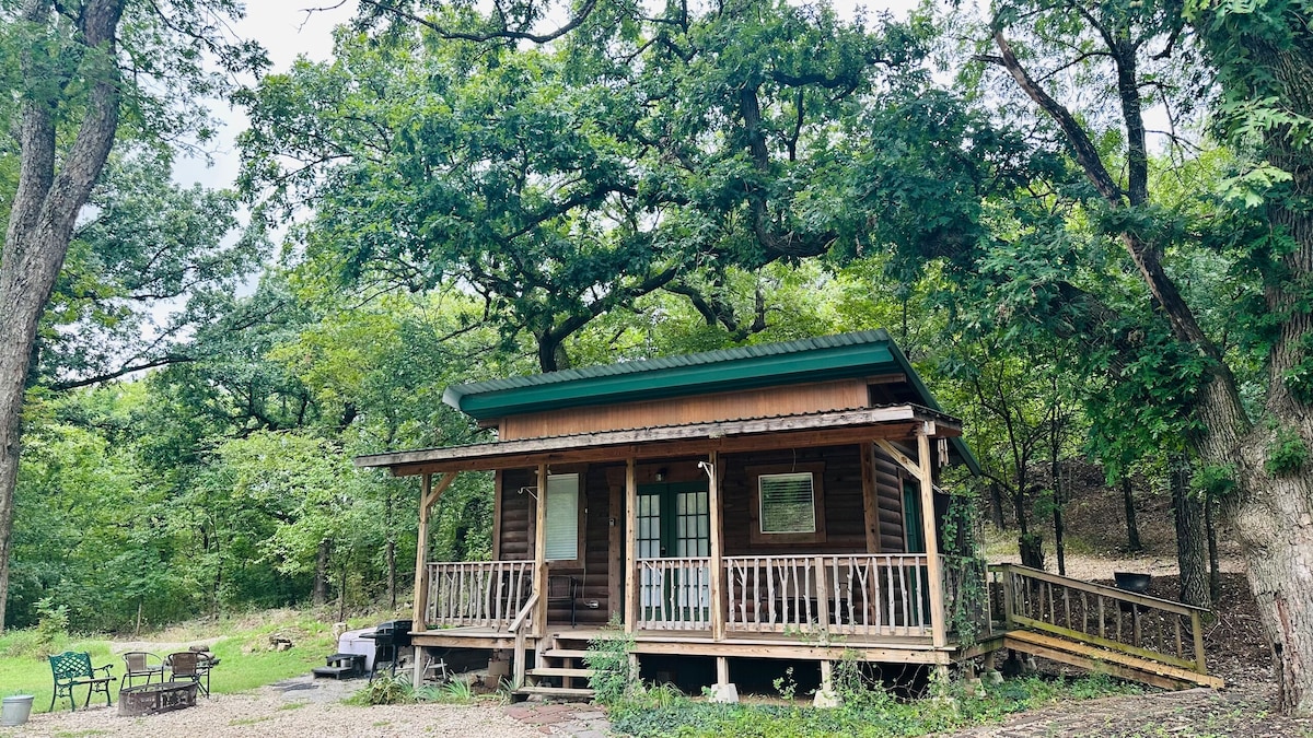 This tiny 200sqft cottage is on a 1200 acre ranch in the Arbuckle Mountains. The rock bottom creek, just 100 ft from the cottage, can be heard from the deck most of the year. There are trails through the woods, along the creek and to the top of a mountain. Enjoy the hot tub or campfire under the stars, play croquet, frisbee golf or other games in the nearby field. This remote retreat is perfect for nature lovers not partiers. It is important to read about the space below so no surprises