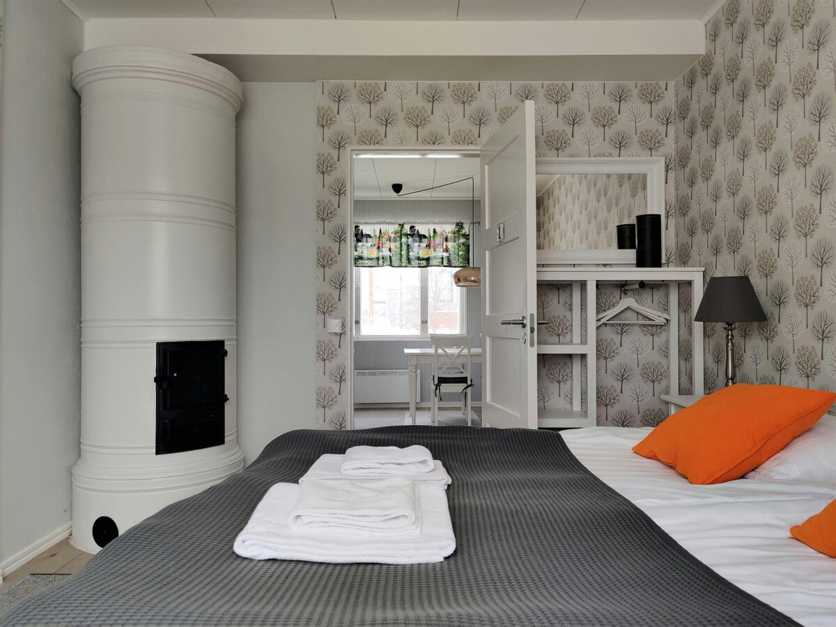 Bright and spacious 49m² studio in central Tornio, ideal for two guests. Located on the top floor, it features a private sauna, well-equipped kitchenette, washing machine, and flexible sleeping arrangements. Close to city services and attractions.