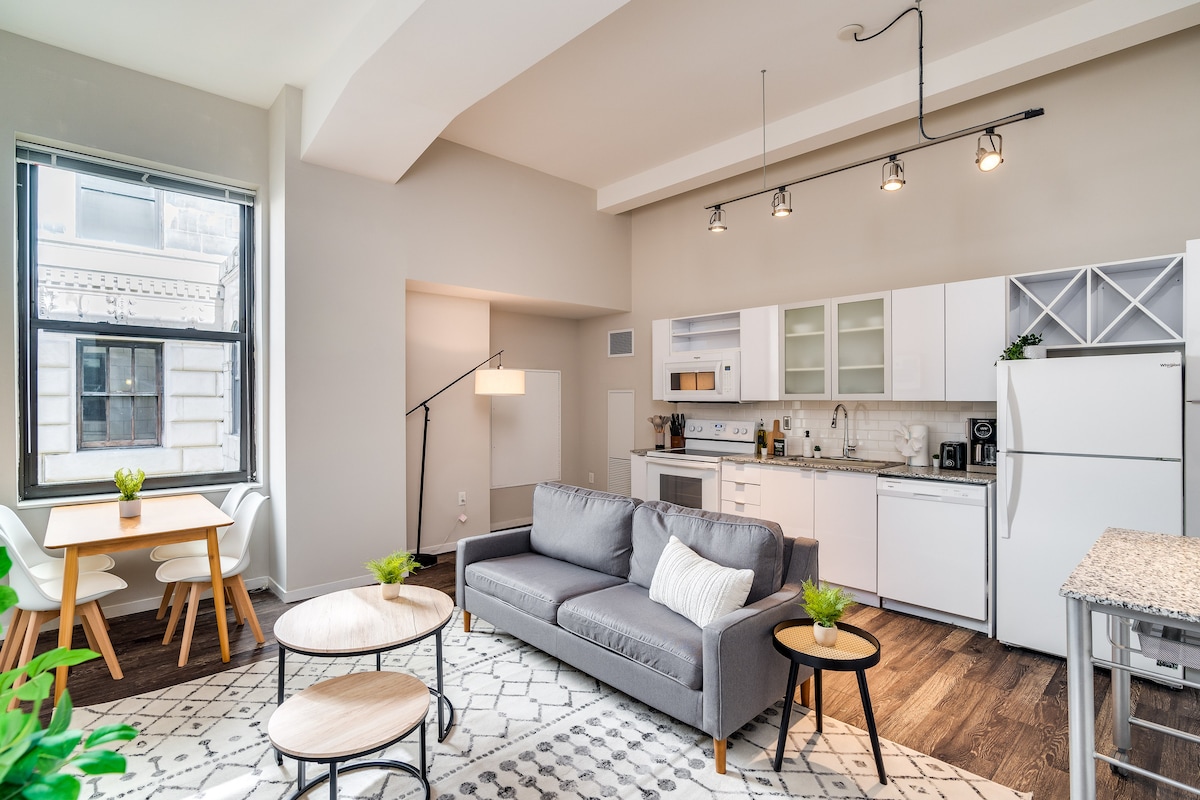 Welcome to your stylish & modern 1BR apartment in the heart of downtown Cincinnati, steps from the stadium! Perfect for 2 guests! Enjoy a cozy, well-designed space with chic décor, a fully stocked kitchen, bath & smart TV. Walk to top attractions, dining, and events. Ideal for couples or business travellers. Step into this heart of the Central Business District and experience Cincinnati like never before. BACKGROUND CHECK & GOVERNMENT ID REQUIRED .