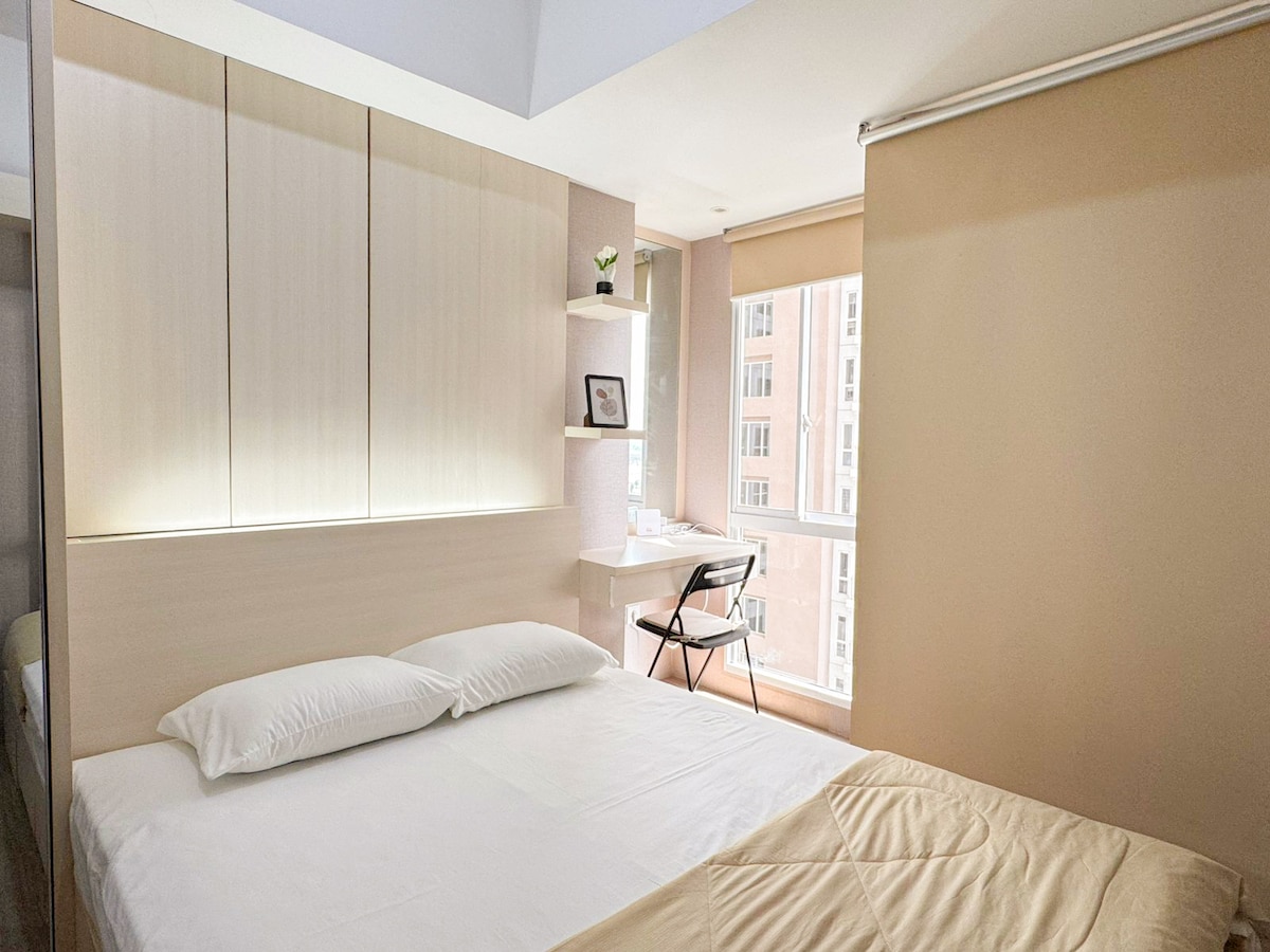 Tere tulemast meie elavasse ja mängulisse 2 magamistoaga, 1 vannitoaga, 1 kööki, korterisse! Hind ei sisalda korteri parkimistasu. Auto puhul: IDR 4000/ tund. Mootorratta puhul: IDR 2000/ tund. Naudi koos meiega puhkust ja avasta turuplatsi erinevate restoranidega otse iga torni „ TOKYO KESKUS“ esimesel korrusel ja avasta meiega koos elamist ^^