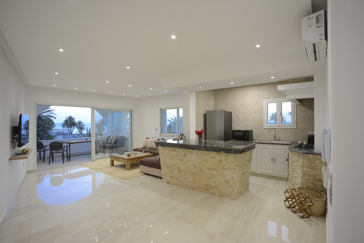 Naudi oma puhkust stiilses ja kvaliteetses rannakorteris otse mere ääres kaunil Kerkennahi saarel • Kaks magamistuba • Kaasaegne konditsioneeriga elutuba • täielikult varustatud köök • Suur terrass söögitoa ja grillialaga Vaid mõne sammu kaugusel rannast asuv asukoht on ideaalne puhkuseks, suplemiseks ja vaikseteks õhtuteks mere ääres. Nende majutajad on sõbralikud, abivalmid ning räägivad araabia, prantsuse, inglise ja saksa keelt