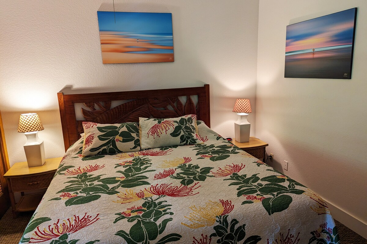 Avasta Lõuna-Kauai Poipu Beachi ilu, mis on lühikese jalutuskäigu kaugusel meie korterist Kœuna Plantation Resortis. Poipu rannas on juurdepääs snorgeldamisele, ujumisele ja lainelauasõidule aastaringselt, kuna lõunarand on kaitstud, kui põhjaranniku rannad on suletud 10' lainetega. Meie ühe magamistoaga korter on maapinnal, kus on parkimine väljaspool korterit. Naudi rahulikku puhkepaika asukohas nr405, nautides samal ajal lanai aiavaate vaatamisväärsusi ja helisid.