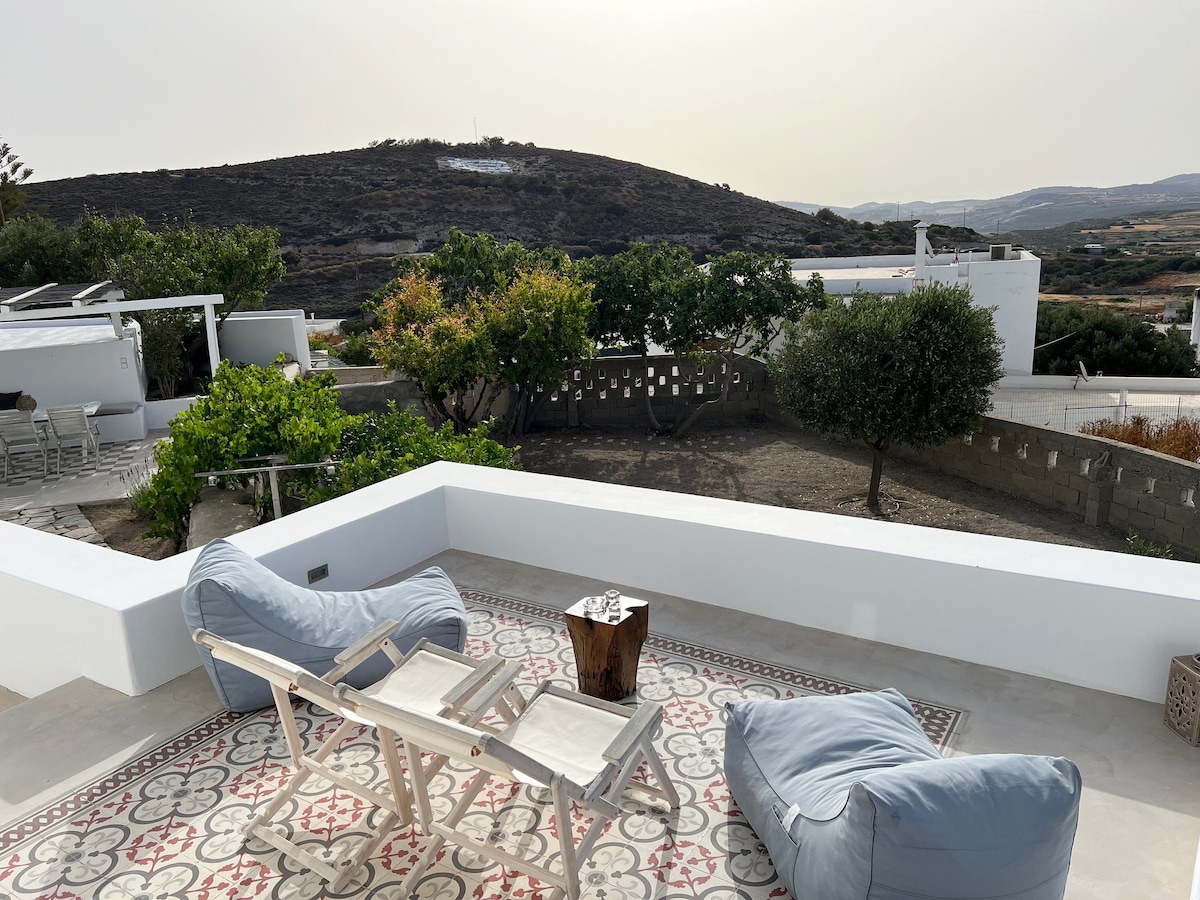 „Villa Soleil“ on ilus Küklaadi maja, kust avaneb rabav merevaade maja igast punktist, mugav ja funktsionaalne, ideaalne perepuhkuseks või suureks peopuhkuseks. Kui otsid rahulikku puhkust, premeerivad majutuskoht ja vaade sind täielikult! Meie aed on täis kohalikke taimi, lilli ja maitsetaimi ning seal on suur merevaatega mullivann, mis lisab ka sinu lõõgastumise hetki, vaadates merd otse sinu ees!
