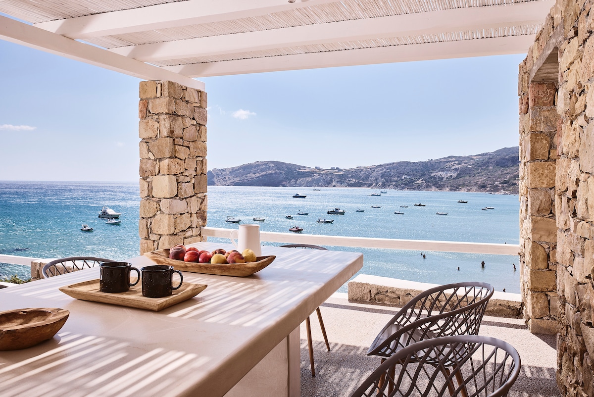 Milos Echoes is a triumph of Greek architectural design and hospitality floating above the Aegean Sea. This intimate complex of six suites honors the Greek tradition of simplicity and is oriented only for adults. Echoes Suites' stunning location is perfect for sunset lovers. As the sun starts to slowly sink into the Aegean Sea our guests settle into comfortable private terraces that blend into the landscape and enjoy the enchanting spectacle. The universal Greek word “echo” is our inspiration.