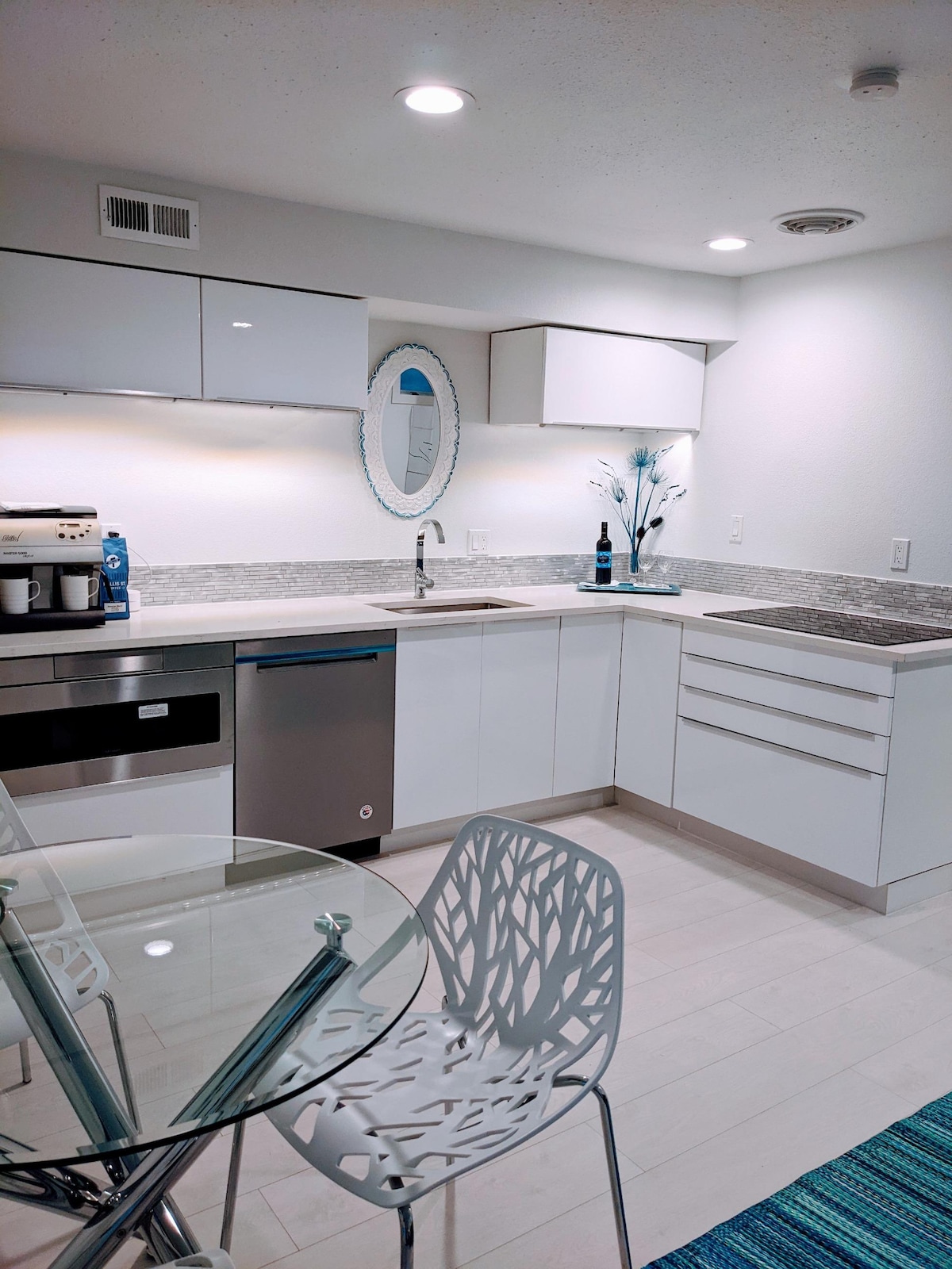 Ühe magamistoaga varjupaik uhiuue sisustuse ja seadmetega. Asub bluffi ääres kauni vaatega ja juurdepääsuga rannale. Kahe ilusa pargi vahel. 10 minuti kaugusel lennujaamast ja 15 minuti kaugusel Seattle 'i kesklinnast. Täisköök pliidi, nõudepesumasina, külmkapi ja kõigi vajalike söögiriistadega. Espressomasin, nutiteler, pesumasin ja kuivati on kõik olemas, et tunneksid end nagu kodus. Naudi end hea veini ja Hollandi juustudega, millega majutaja sind üllatab.