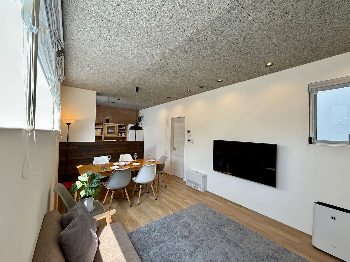(Shin house) 2 min walk Near metro center 5 min drive Otako design living room parking one stop to Susukino high speed wifi