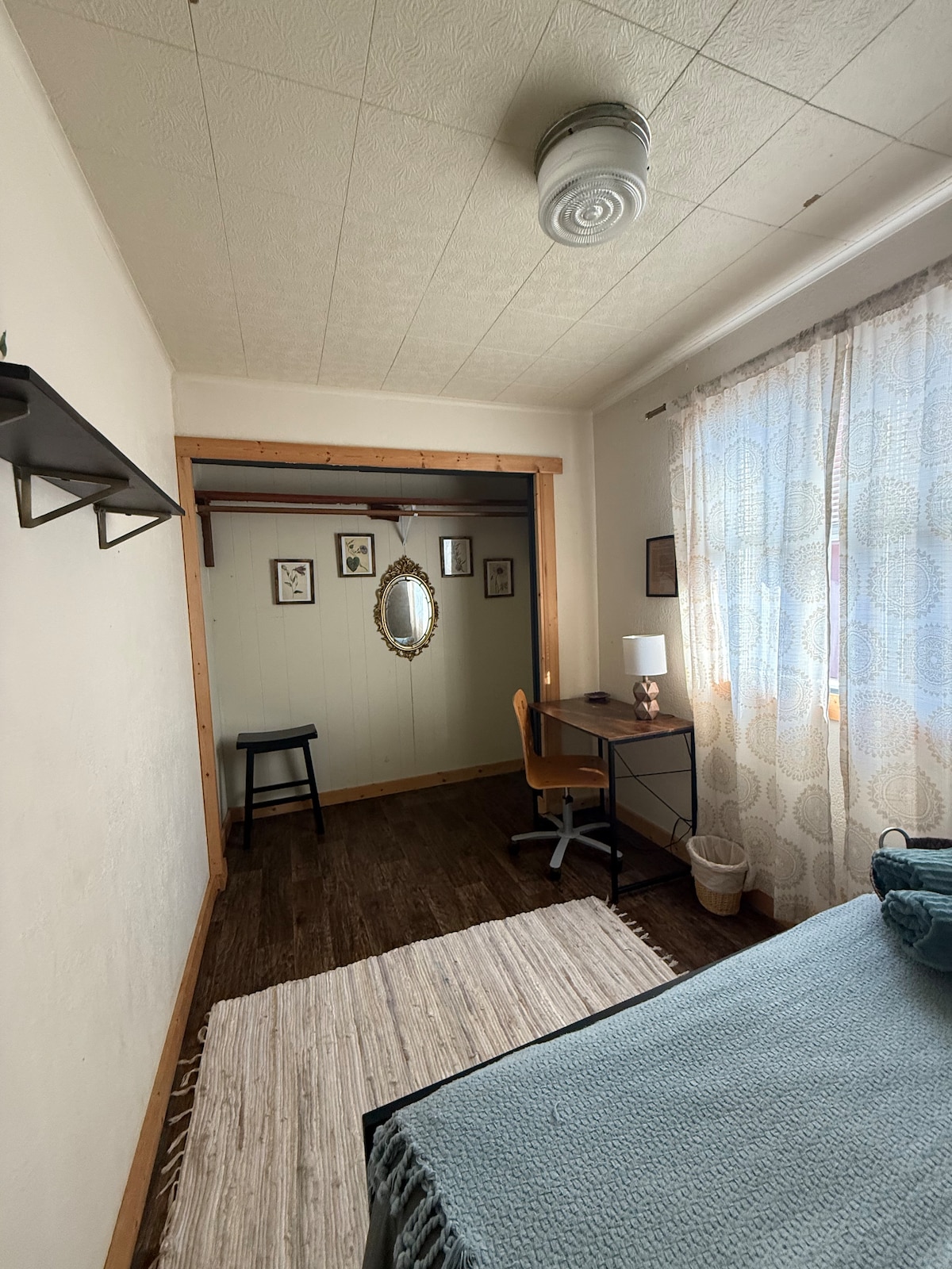 My guest space is a small, private room (11x7, not incl bathroom) attached to the back of my house. The room has a private entrance off the backyard with an attached private bath. I offer keyless entry. Guests can enjoy the attached deck off the room and relax in a peaceful yard. The room is a burst of color to contrast with the gray days in Humboldt. The room is a short walk to the zoo and several restaurants. Old town is a quick drive.
