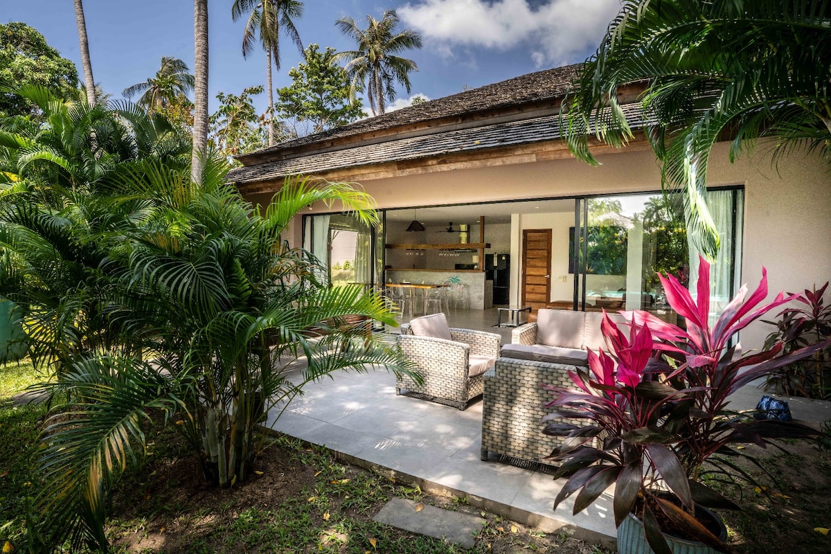 Luksuslik merevaatega villa soolabasseini ja saunaga Tere tulemast oma kaasaegsesse troopilisse puhkepaika Koh Phanganis! See vapustav 4 magamistoaga villa ühendab sooja minimalismi Tai detailidega, pakkudes täiuslikku kombinatsiooni mugavusest, stiilist ja hingematvatest ookeanivaadetest Srithanu rannale, mis asub vaid 1 km kaugusel. Looduses 200 m kaugusel Chaloklumi ja Thong Salani ühendavast peateest asuv villa pakub nii privaatsust kui ka lihtsat juurdepääsu saare parimatele kohtadele, sealhulgas Hin Kong Beachile (5 minuti kaugusel).