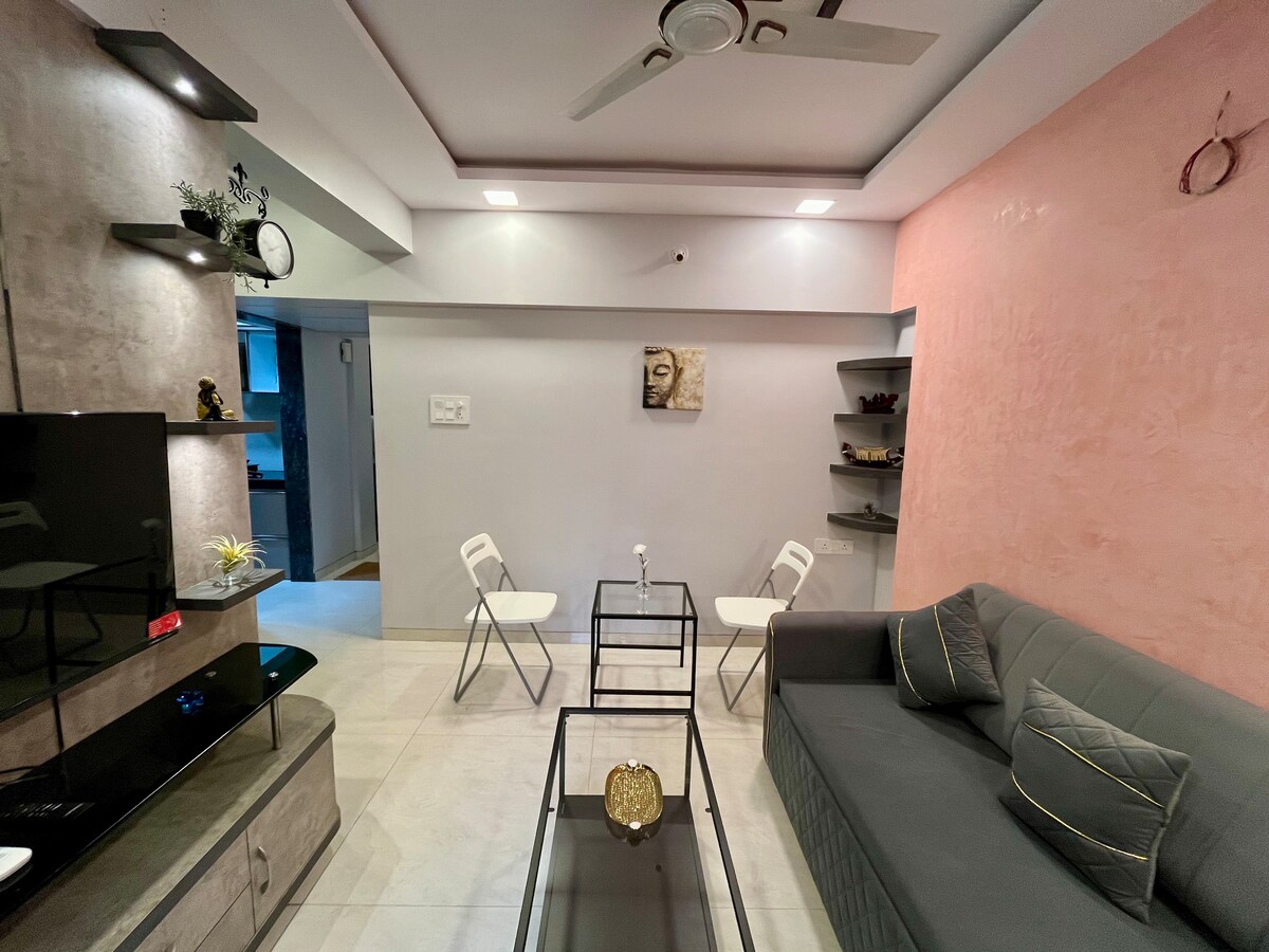 Innjoyfuli Madhuleela: 600 ruutjalga suur, suur 1 voodiga majutuskoht. Meil on siin samas majas 4 korterit. Sinu mugavustsoon täielikult varustatud köögiga, kus on mugavused nagu pesumasin, mikrolaineahi ja gaasiühendus moodulköögis. Naudi eksklusiivset privaatsust selles 1. korruse korteris, mis on ainus korter kogu korrusel. Sensoorne aed: 50 m Juinagari jaam (W): 350 m Sanpada jaam 1,7 km Mindspace Juinagar: 2,6 km Vashi jaam: 3 km DY Patili staadion: 3,9 km