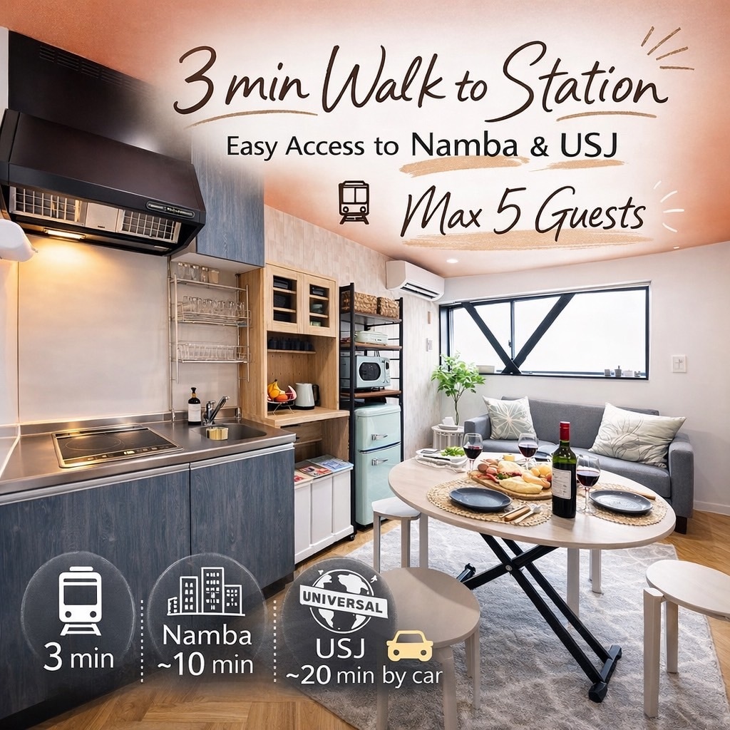 3 min jalutuskäigu kaugusel lähimast jaamast/15 min rongiga USJ-sse/Designer Minpaku/Lien de premierisse