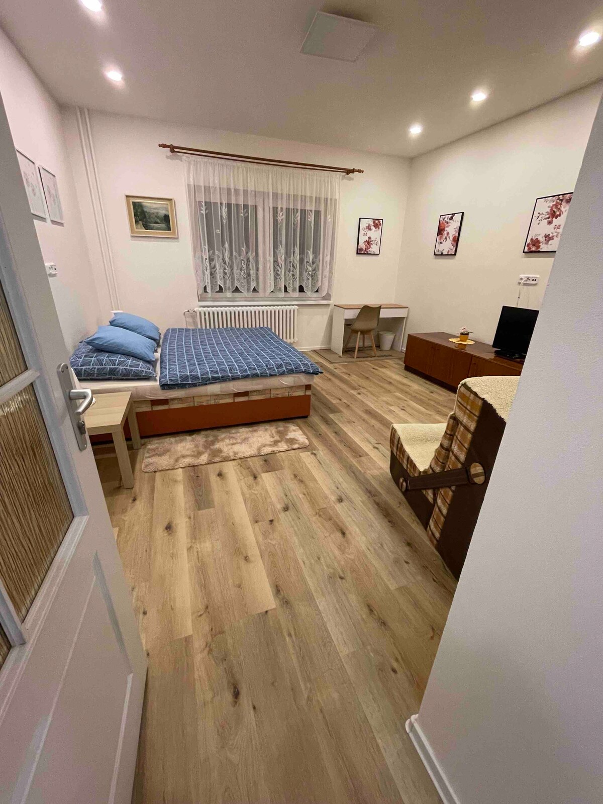 APT is not shared. Not suitable for infants-if we agree,the infant pays the fee for an additional person.Special offer. For long stay- more people.The APT is 3+1, 2 rooms are lockable. Accommodation- guests 4+ will be available use 3rd room-otherwise for an fee. Using basicly-1 bedroom+dining room+kitchen for rent. Bedroom - double bed+sofa bed suitable as a bed. Kitchen fully equipped. Parking on the street for free. Raised children from 6 years are welcome. Sofa by kitchen-not for sleep.