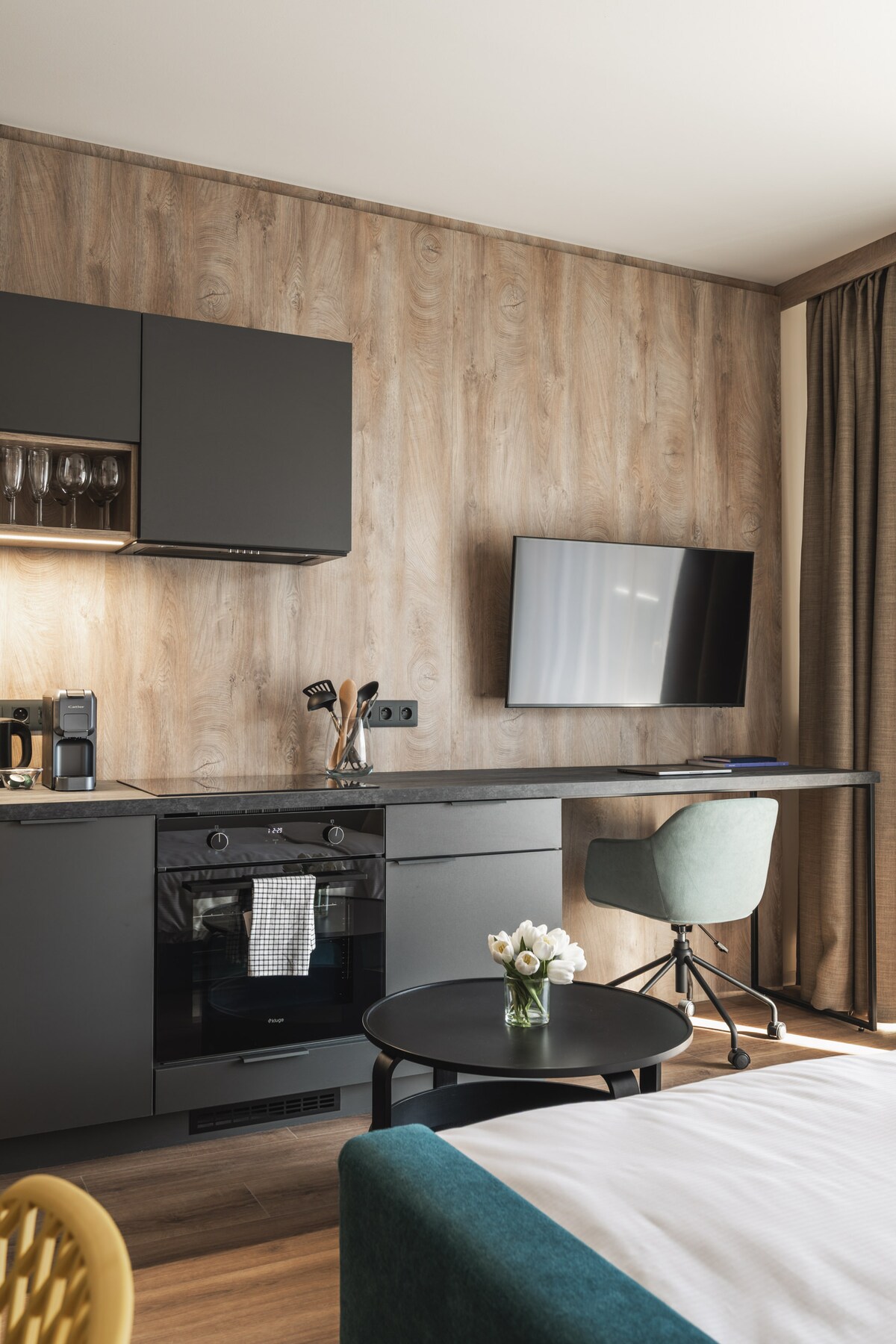 Cozy and stylish apartment in a quiet, green residential area. Perfect for couples and travelers who want to enjoy Prague while having a peaceful place to relax. Easy access to the center (20 min by public transport). Free parking directly in front of the building. Balcony with greenery views and a fully equipped kitchen create a warm, comfortable atmosphere for restful moments.
