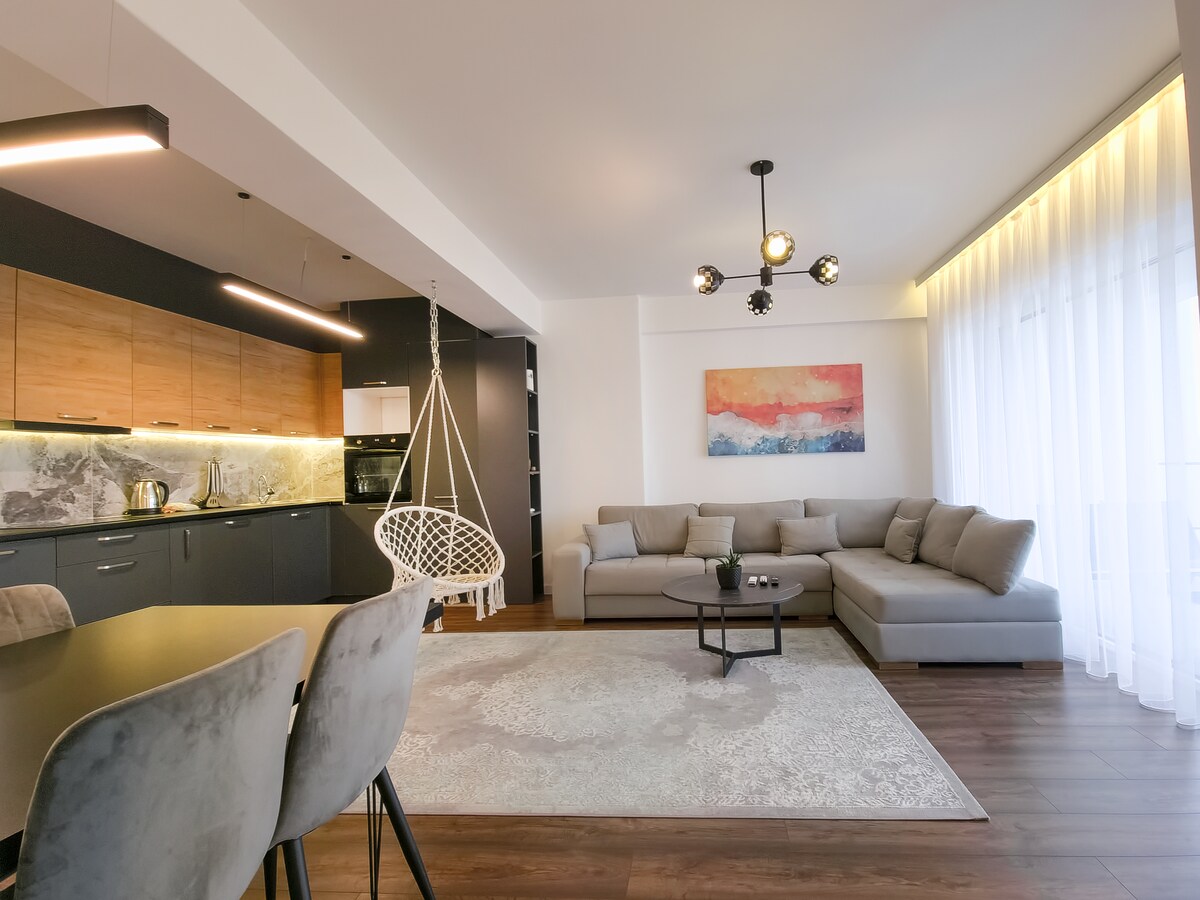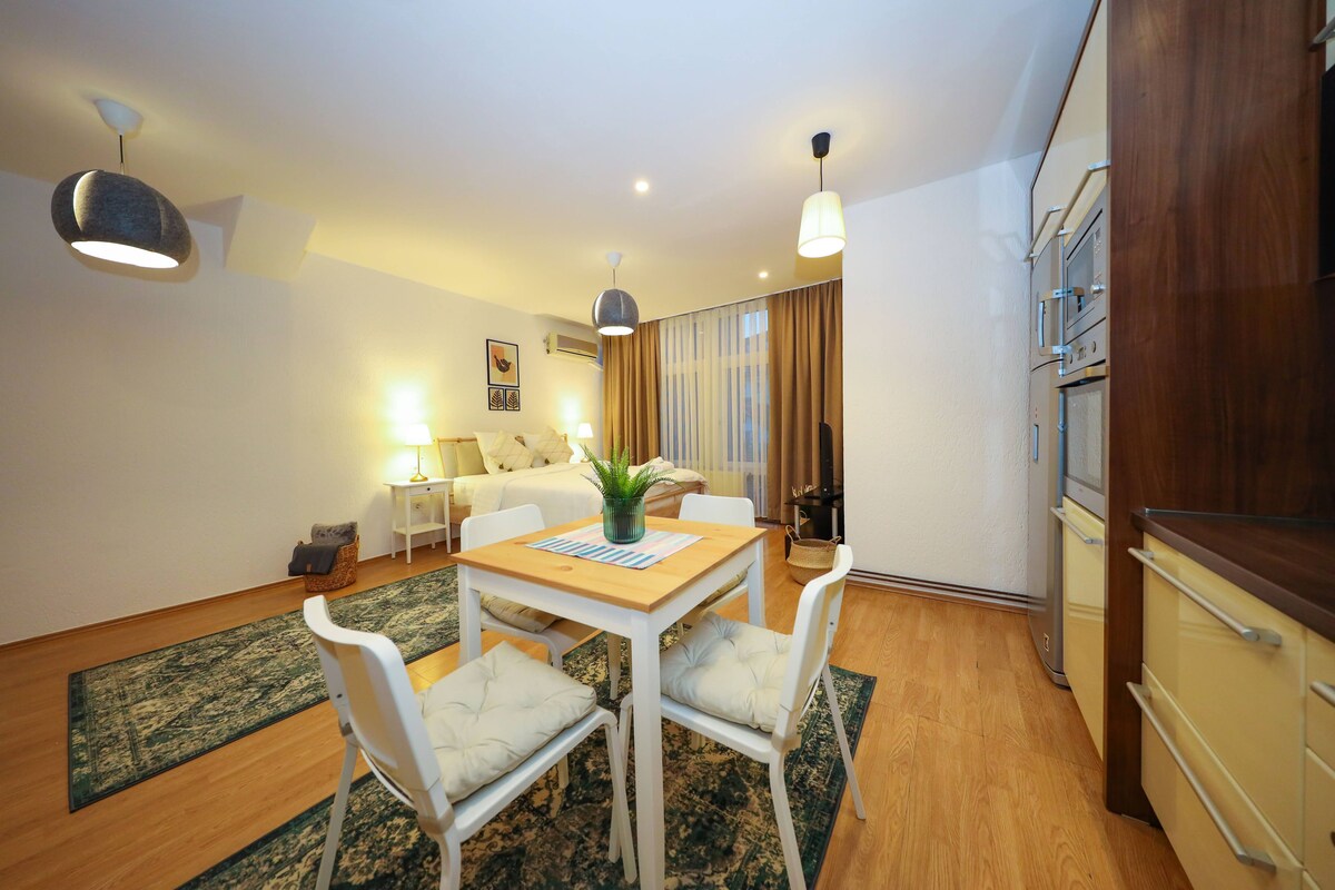 See korter asub Pristina südames, otse peaväljakul, täielikult jalakäijatele mõeldud piirkonnas, kus autoliiklust ei ole. Kohvikud, restoranid, raamatupoed ja kultuurikohad on vaid mõne sammu kaugusel. Nagu sellise keskses ja elavas asukohas oodata võib, on ümbrus elav, eriti päeval ja õhtul. Korteris on nutikalt kujundatud köök, mida saab muuta elutubaks. Köögi sügavad ja rikkalikud toonid loovad sooja linnaliku atmosfääri.