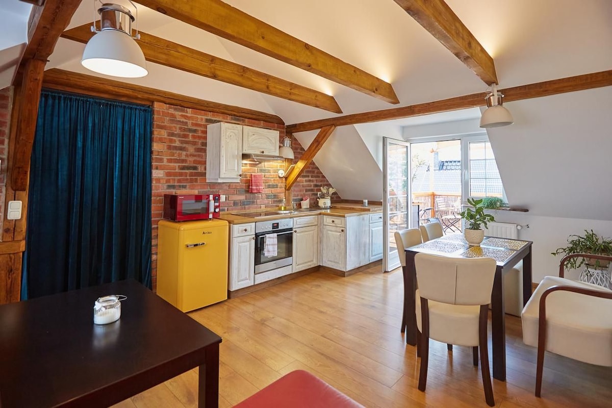 Mugav lofti stiilis korter asub Osowiecis (13 km kaugusel Opole 'i kesklinnast). Piirkonnas on metsad ja järved, mis ahvatlevad õue minna.