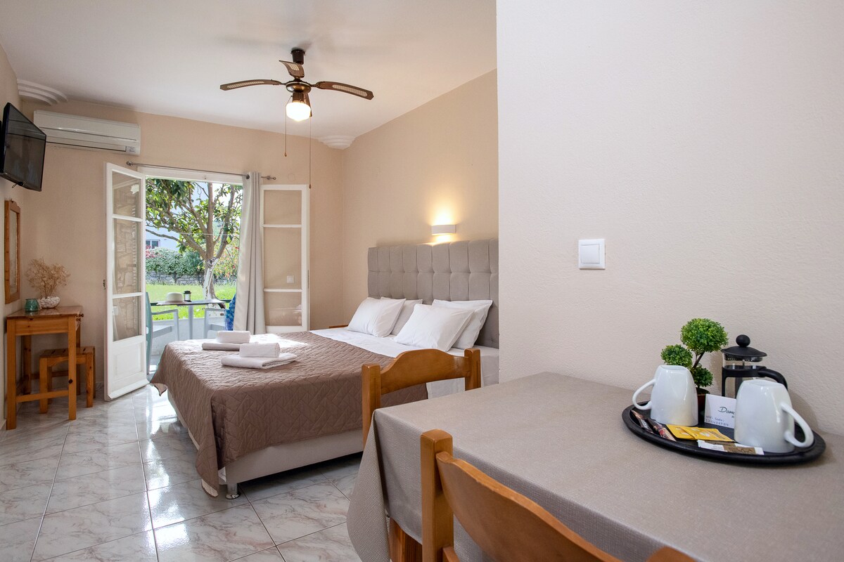 See on väike kompleks iseteeninduslikke üksusi, mille rõdult avaneb vaade aiale. See on Kassiopi kesklinnast 5-minutilise jalutuskäigu kaugusel. Randa pääseb pärast 10-minutilist jalutuskäiku. Damaskise stuudiotel on otsene juurdepääs oranžide, viigimarjade, sidrunipuude ja viinamarjaistanduste meeldivale aiale. Igas majutuskohas on külmiku ja veekeetjaga kööginurk ning dušiga privaatne vannituba. Damaskise külalised naudivad tasuta WiFi-ühendust ja juhtmega internetiühendust kogu majutuskohas. Kohapeal on saadaval ka tasuta privaatne parkimine.