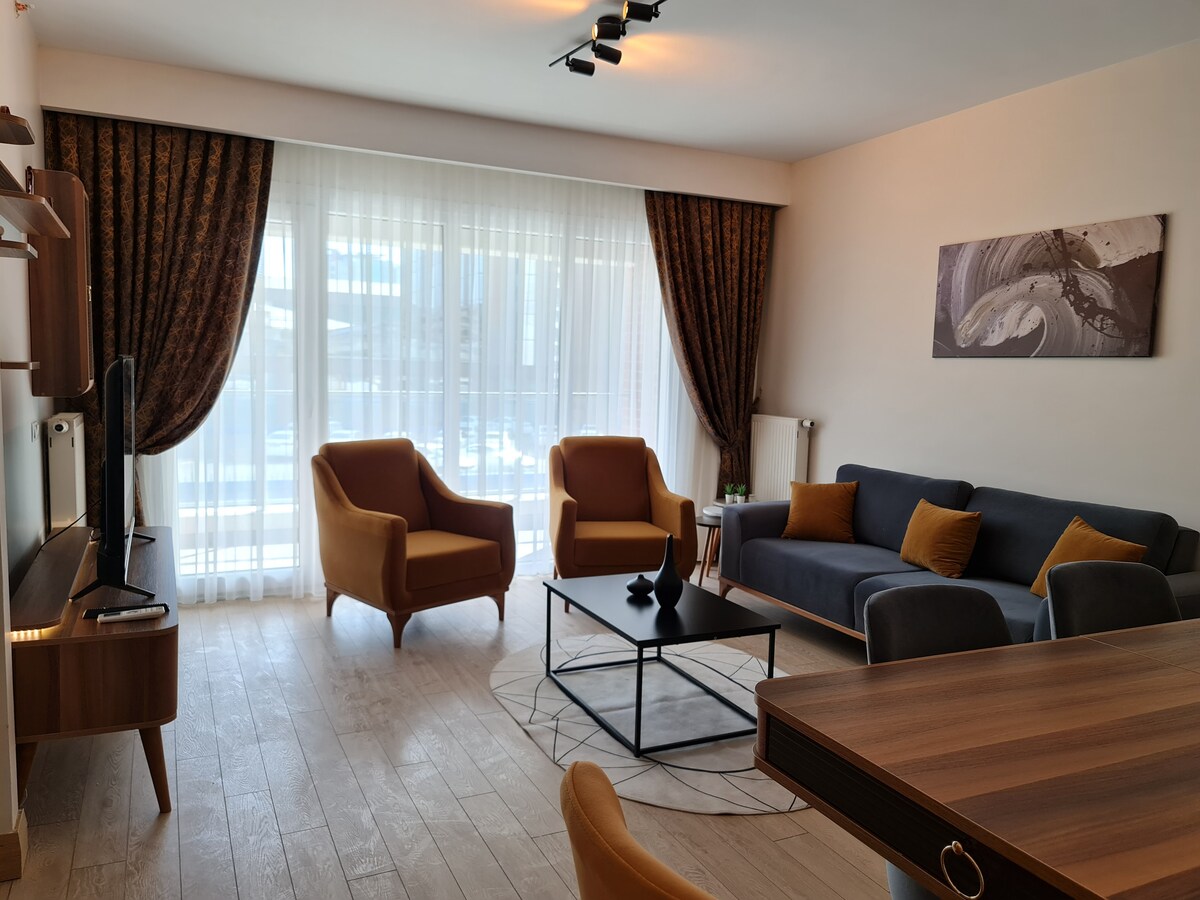 Kaasaegne ja stiilne kahe magamistoaga korter uhiuues elukohas 212 müügikohas ja Istanbuli ostukeskuse lähedal, mis pakub külalistele kõrgetasemelise turvalisusega kõige lõõgastavamat peatumist. Külalised naudivad uhiuut avarat laekõrgete akendega korterit, mis valgustavad ruumi rohke loomuliku päikesevalgusega. Majutuskohas on viietärnimugavused ja see on varustatud kõigi külaliste vajaduste rahuldamiseks, sealhulgas nõudepesumasin, küte, pesumasin, televiisor, WIFI, keskküttesüsteem ja mitmesugused muud mugavused.