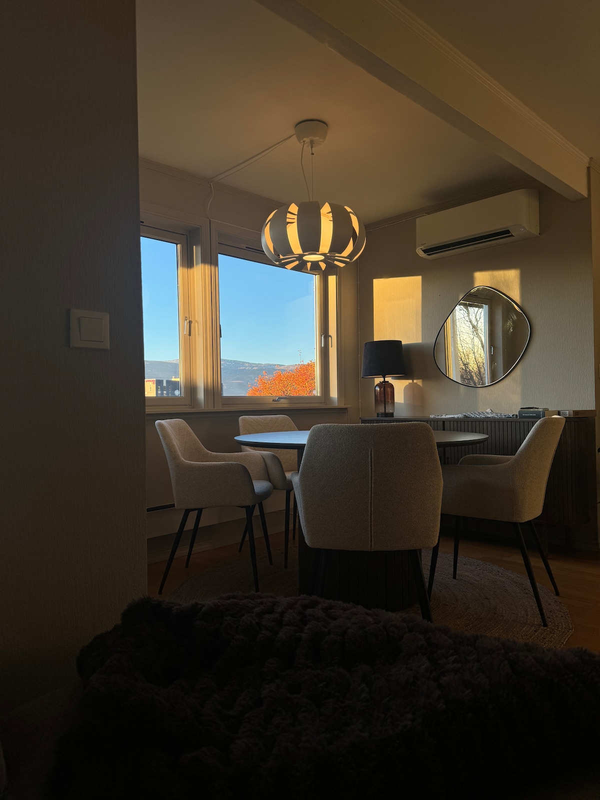Welcome to our charming apartment with a beautifull view, located in one of Tromsø’s quiet yet central streets. Just 5-7 min walkingdistance to the Tromsø center. It is close to the busstopp, skiing area, swimmingpool, gym, aurora tours, shopping and outdoor playgrounds, cafes and restaurants are just nearby. Whether you're here to explore the Arctic, catch the Northern Lights, or simply relax, our home is the perfect base for your stay.