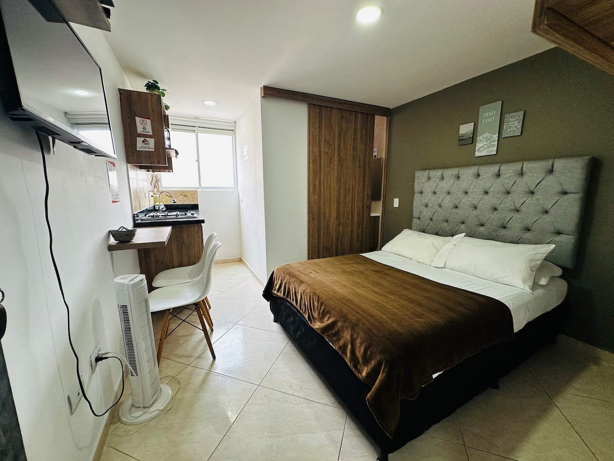 Sa oled 4-minutilise jalutuskäigu kaugusel Envigado jaamast, väljaspool maja saad sõita bussiga või jalgrattaga, mis võimaldab sul jõuda linna peamistesse kohtadesse. Samuti oled 3-minutilise jalutuskäigu kaugusel VIVA kaubanduskeskusest ja 15-minutilise bussisõidu kaugusel Llerase pargist. Stuudiokorteris on kapp, nutikas teler, laud, kaheinimesevoodi, väga hea valgustus, ventilatsioon ja rõdu.