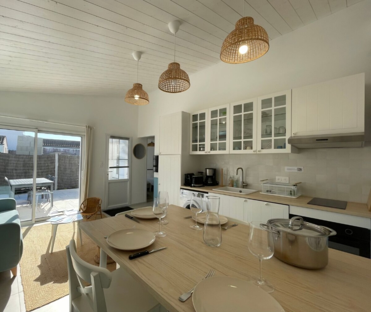 Täielikult renoveeritud kliimaseadmega. Väike maja La Guérinière 'is 2-minutilise jalutuskäigu kaugusel rannast, mis asub peaväljaku lähedal, asuvad lähedal asuvad poed (esmatarbekaupade pood, pagariäri, apteek, pizza...). Wifi ja televiisor Uus diivanvoodi, samuti kaheinimesevoodi mezzanine 'is, vannituba duši ja tualetiga. Köök ahjuga, mikrolaineahi, Nespresso kohvimasin Kõik, mida pead tegema, on nautida oma peatumist saarel!