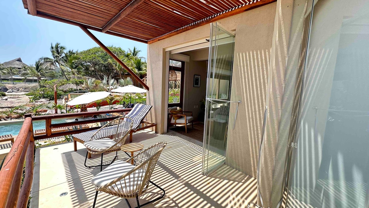 Keskmine hinnang 4,96/5, 55 hinnangutImeilus 2BR/2BA Beachfront Condo Troncones Nerea