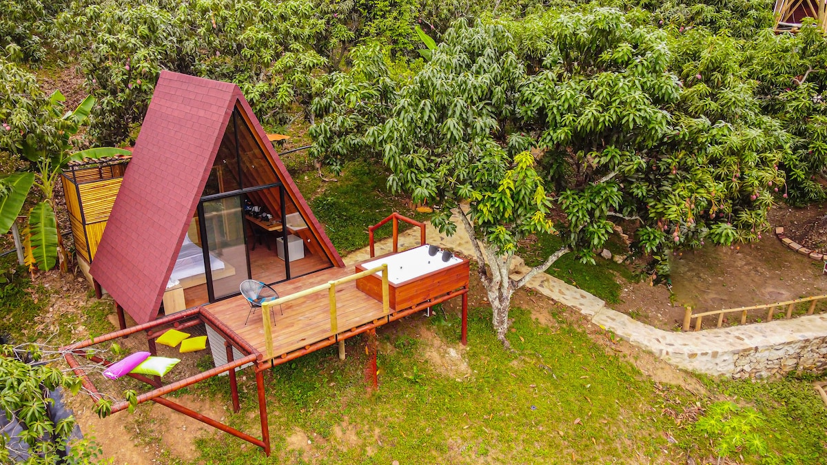 En Serenity Cabin de Entremangos Natural Retreat, puedes disfrutar de la tranquilidad que se vive entre mangos y vistas montañosas. A solo 10 min de La Mesa y 1.5 h de Bogotá, ofrece un escape único con clima ideal. Disfruta la naturaleza, explora y conoce las multiples atracciones en los alrededores de La Mesa y Anapoima, y luego relájate en el jacuzzi con un vino. Un refugio para amar, celebrar y reconectar.