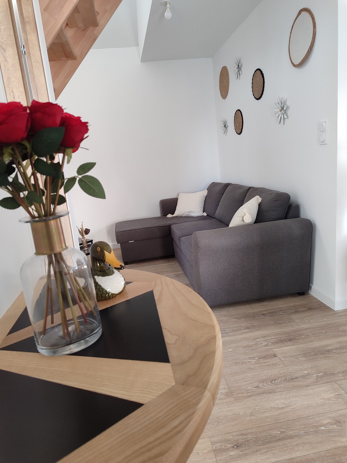 Situé à la campagne dans un petit hameau calme .Ce logement est indépendant et mitoyen avec notre logement . Il peut accueillir 2 pers ( 4 si des enfants qui utilisent le canapé lit).Il y a un jardinet clos,engazonné et fleuri. Une terrasse en bois avec table,chaises,voile d'ombrage et transats. Nous acceptons uniquement 1 chien et de petite taille et pas chien de categorie( staff,rott etc...) Nous ne voulons aucune fête dans le logement, pas d'anniversaire, ni réveillon.