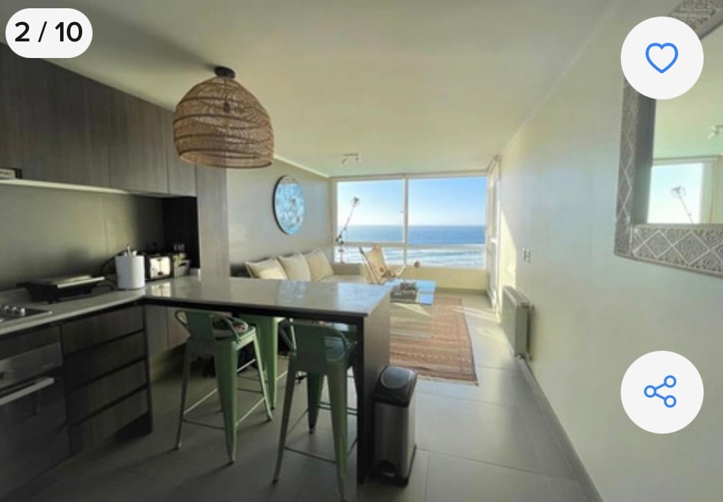 Privilegiada ubicación en primera línea de la Avenida del Mar, con una vista directa al océano desde la terraza. Disfruta de atardeceres únicos, acceso inmediato a la playa y todos los servicios esenciales a solo 3 minutos caminando: restaurantes, pastelería, farmacia y almacén. El departamento está completamente equipado, cuenta con piscina, estacionamiento techado, WiFi, TV cable y escritorio ideal para trabajar. ¡Comodidad, vista y ubicación en un solo lugar!