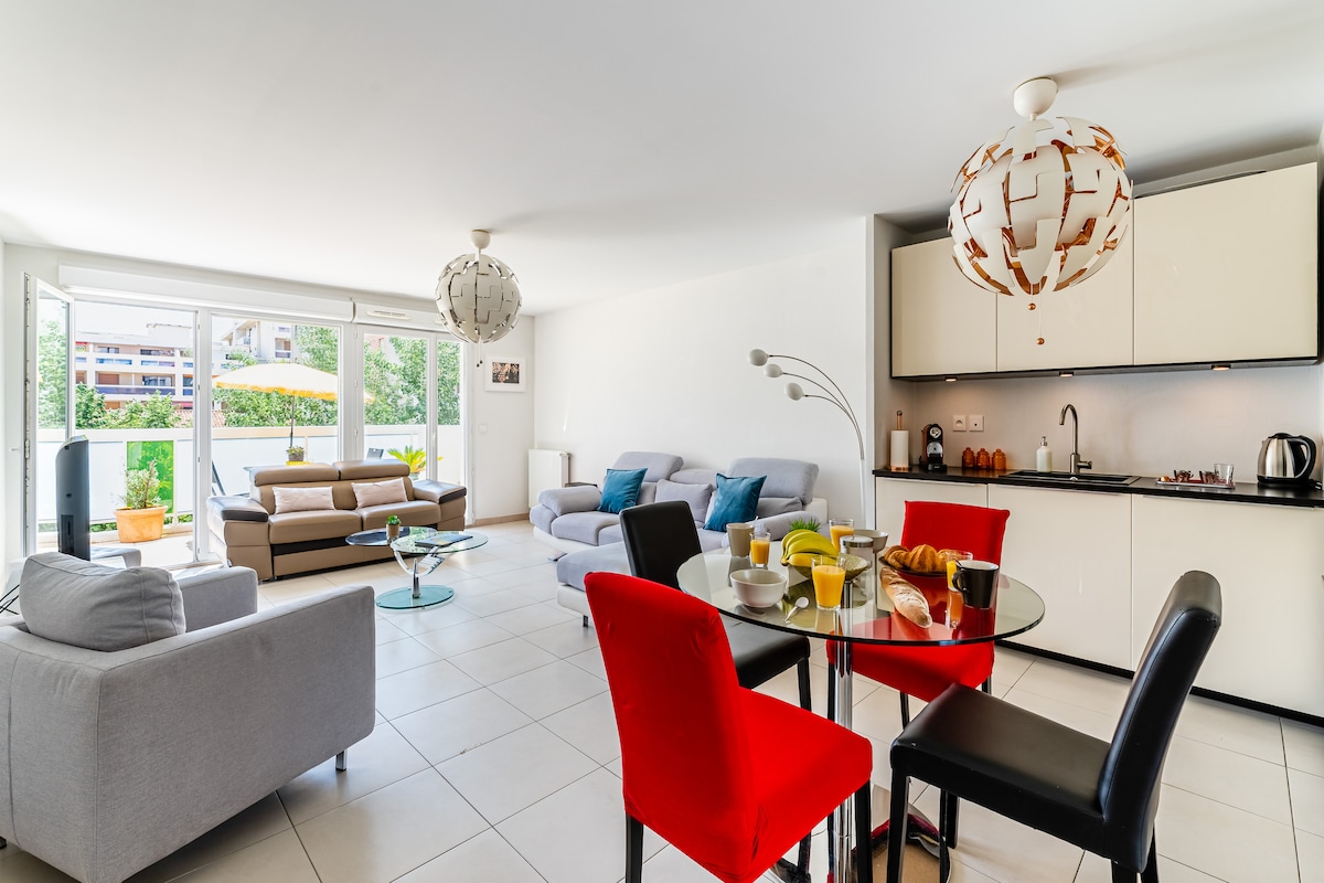 Uus ja elegantne korter kaasaegses ja turvalises elamus, uue Joliette'i linnaosa südames. Metroo (3 peatuse kaugusel St-Charles'ist), tramm ja jalgrattad 5-minutilise jalutuskäigu kaugusel. Kiire juurdepääs A7/A55-le. Vana sadam 7 min trammi. Poed, restoranid, kaubanduskeskus ja Euroopa haigla 5-minutilise jalutuskäigu kaugusel. Privaatne parkimine, terrass. Nädala-/kuu soodustused. Koristusteenust pakub professionaal.