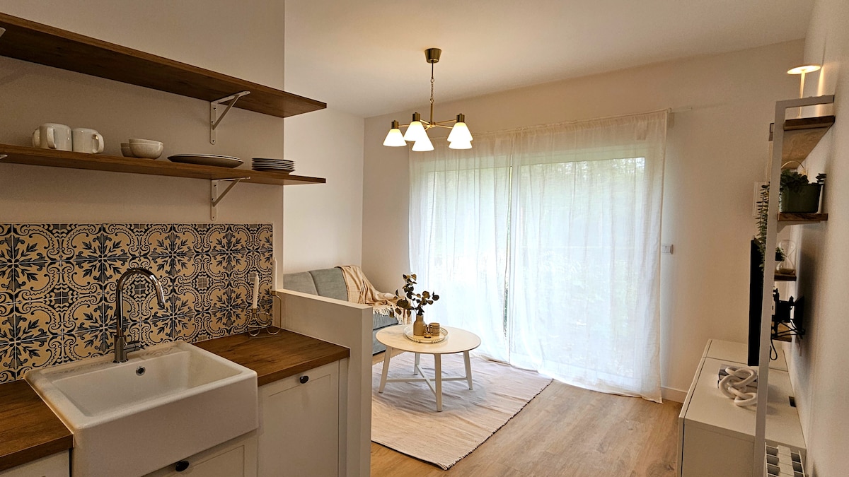 Tere tulemast meie koju! Ootame sind diskreetselt ja hea huumoriga meie maja kohal ja maapiirkonnas asuvas korteris. Korteril on täiesti iseseisev sissepääs ja kaks parkimiskohta! Varustatud köögiga, vannitoa ja tualetiga, samuti magamistuba voodiga 140 x 190 cm ja klõpsuga elutoas 140 x 190 cm. Voodipesu ja rätikud puuduvad. Palume, et koristaksid minimaalselt vajalike tarvikutega.