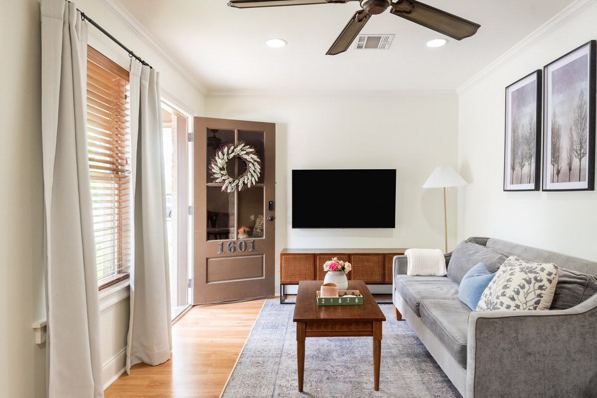 Oleme siin nende ülikoolikülastuste (3 kvartali jalutuskäigu kaugusel), sinu eriliste ürituste või festivalide jaoks! Suurepärane asukoht kohalike kohtade lähedal: söö, joo, vaata ja tee! Naudi jalutuskäigu kaugusel asuvat naabruskonda ja tänavavälist parkimist kahele inimesele! - 4 min autosõitu kesklinna - 4 kvartali kaugusel Ochsnerist - Restoranidest mööda tänavat, meelelahutus Kiudoptiline internet, 55-tolline nutiteler. Tasuta pesumasin/kuivati. Renoveeritud originaalse sarmiga puutumata! Varustatud köök täissuuruses seadmetega. Loomulik valgus! Hiiglaslik varjutatud terrass!