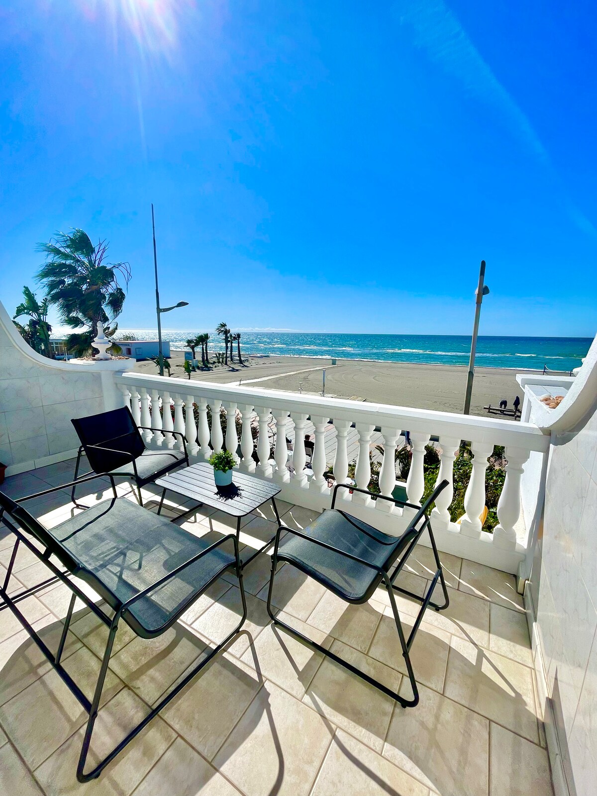 Despierta cada mañana con el sonido del mar. Nuestro apartamento está en primera línea de playa en Mezquitilla (Algarrobo Costa), con vistas directas al Mediterráneo y acceso a la arena en solo unos pasos. Es ideal para familias, parejas o amigos que buscan descanso, sol y tranquilidad, sin renunciar a servicios cercanos.
