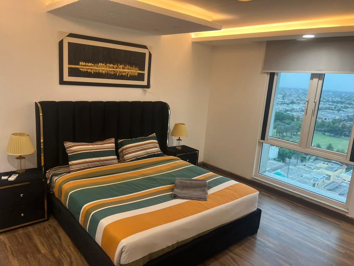 Luxury 1 BHK fully furnished Apartment for couples, friends, solo females and families as well located at Peaceful and private area near Eiffel where everything is in walking distance in the heart of of Bahria Safe private & Secure Location - Self Check In with Pin Code - No need to meet anyone & No reception - 24/7 Security - Modern Aesthetic design - King Sized Bed With Soft Spring Mattress - Ac only in bedroom - Dry Kitchen Only - Free Street Parking - Prime Location For more info