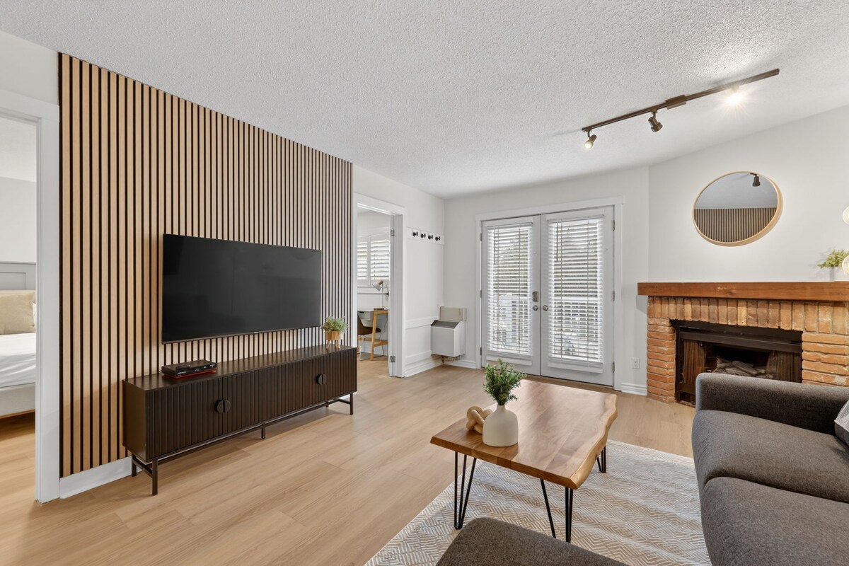 Cozy, quiet 1-bedroom with fireplace and city view