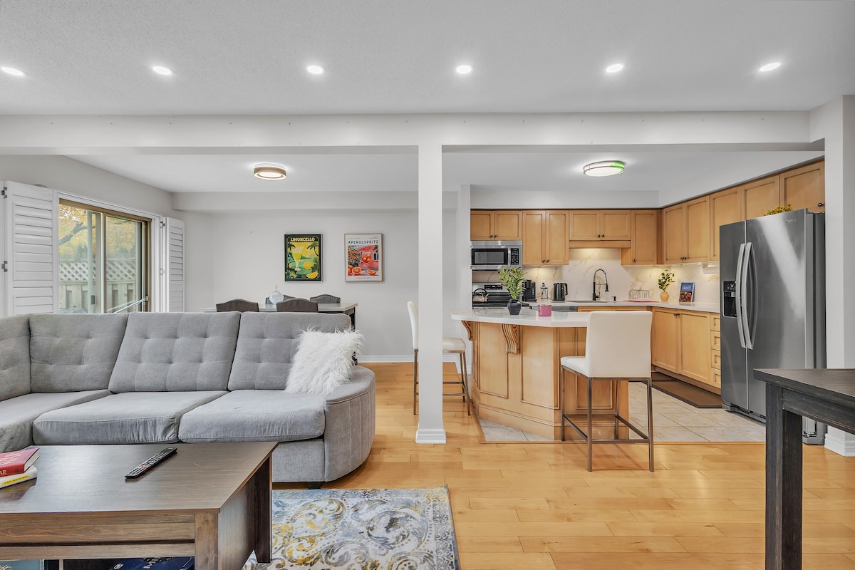 See avar nelja magamistoaga nelja vanniga ridaelamu asub Barrie Southis. See on täiesti privaatne ja iseseisev maja, nii et sul on täielik privaatsus sisse ja välja. Naudi kaunist järve, mis on viie minuti kaugusel. Külalistel on juurdepääs täielikult varustatud köögile, pesumasinale/kuivatile, tasuta kiirele internetile (1500 Mbit/s) ja 55-tollisele nutitelerile koos populaarsete voogedastusteenustega. Kõik populaarsed poed ja mugavused on viie minuti jooksul lähedal.